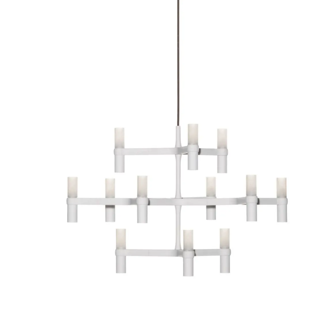 Famille de lampes de suspension dont la forme s’inspire du contour du cristal de neige. Lampes modulaires fabriquées avec une structure en aluminium moulé sous pression. La lampe émet une lumière diffuse.