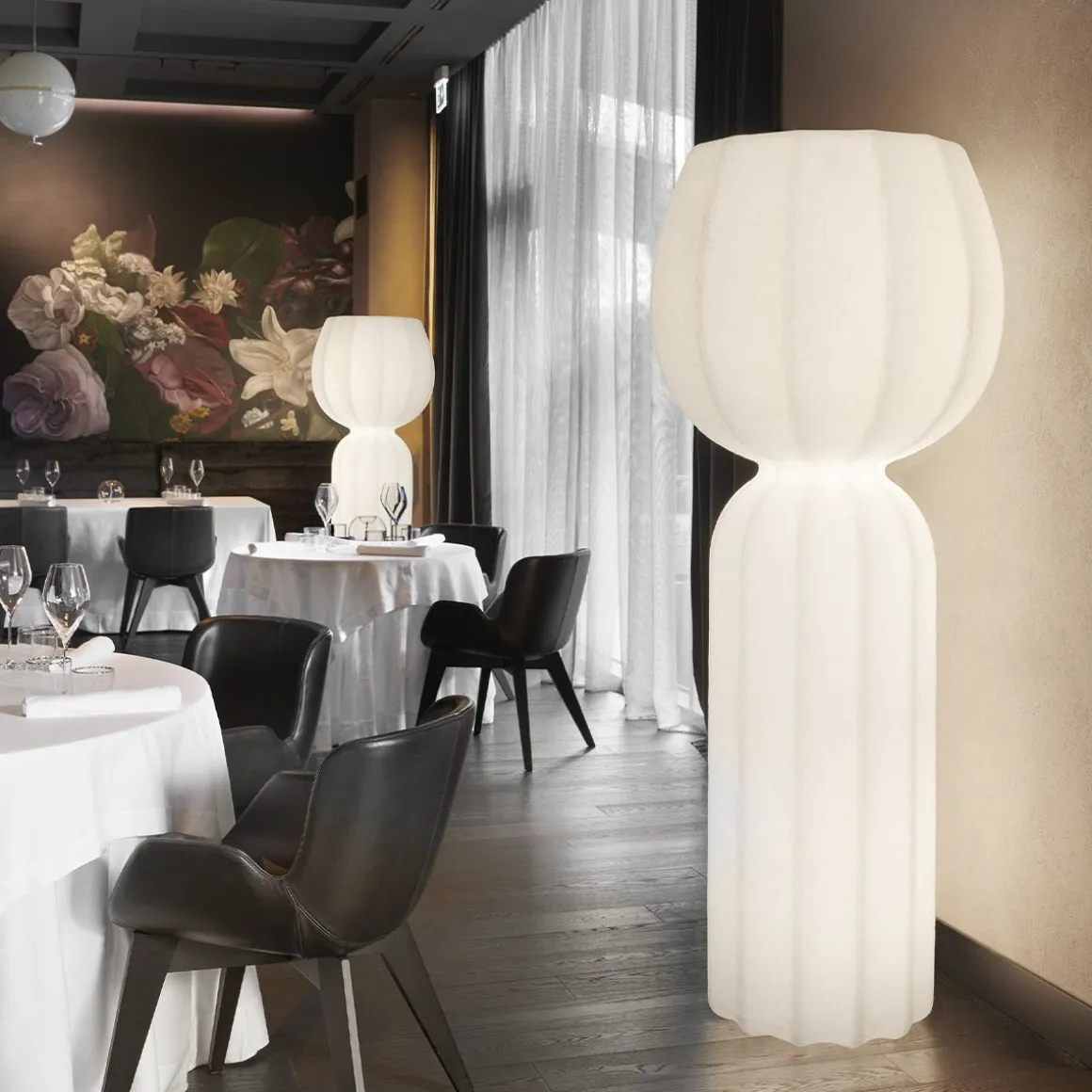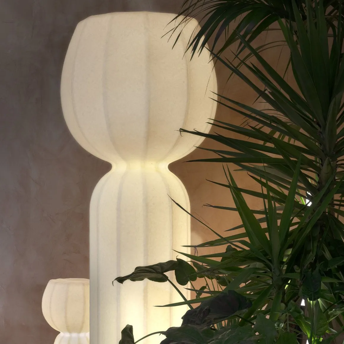 Cucun est une grande lampe de sol inspirée par les formes simples et naturelles des fleurs, des légumes et des bulbe, qui a remporté le prix GOOD DESIGN en 2018. s. La structure particulière réalisé en polyéthylène par roto-moulage rappelle, dans la texture de la surface et dans les nervures, un revêtement de résine reprenant les thèmes de certaines icônes du design italien des années soixante, en créant des effets de lumière douce. Idéale pour décorer les jardins et les espaces extérieurs, Elle est également parfaite pour les intérieurs, grâce à sa forte présence décorative.