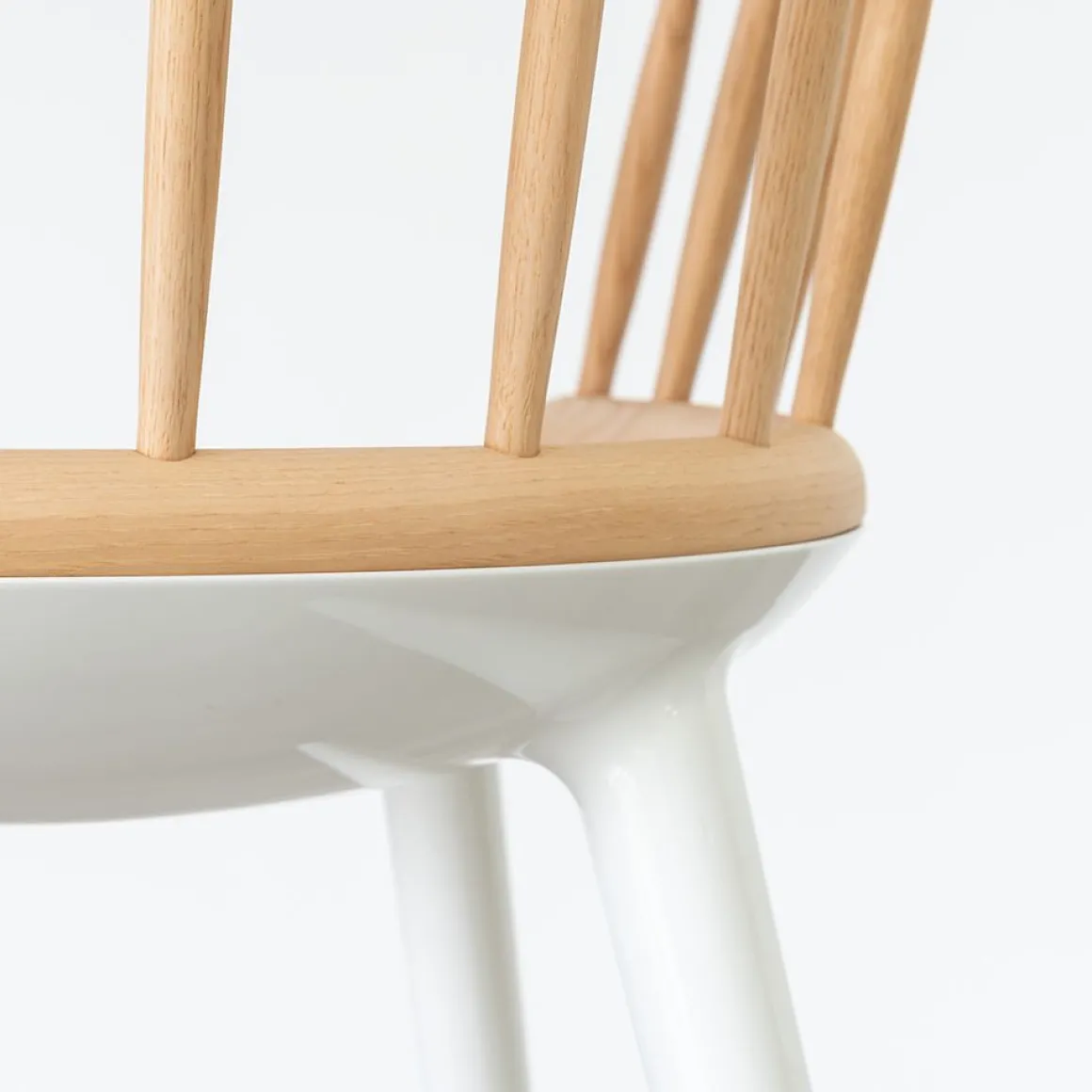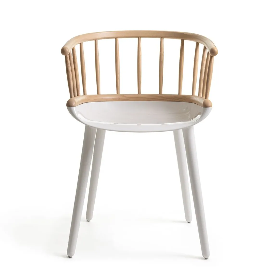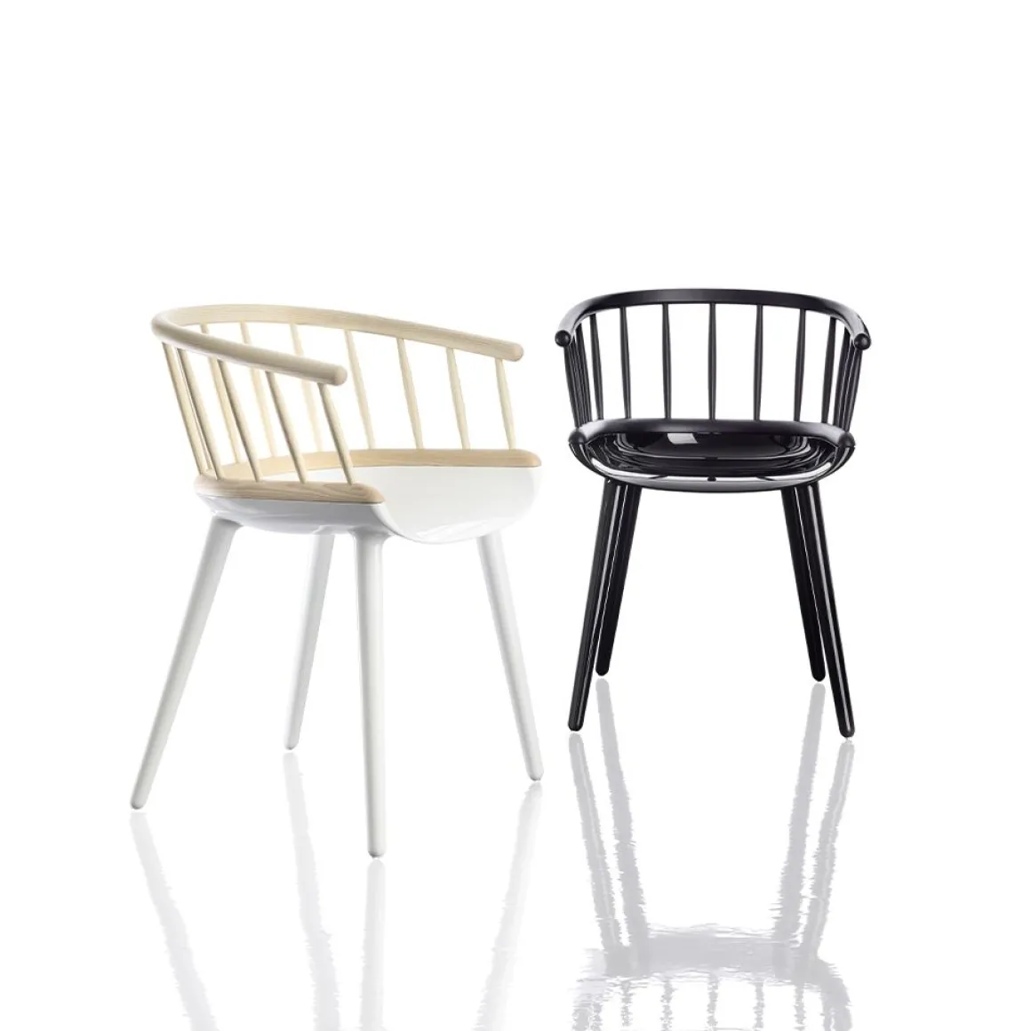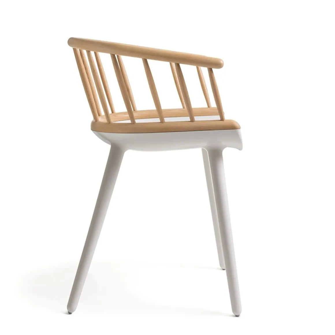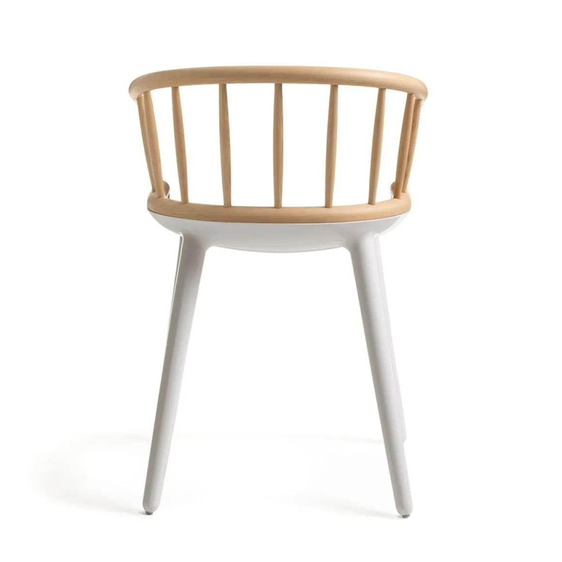 Matériaux : assise et pieds en polycarbonate blanc ou noir, dossier en frêne massif, naturel ou teinté noir