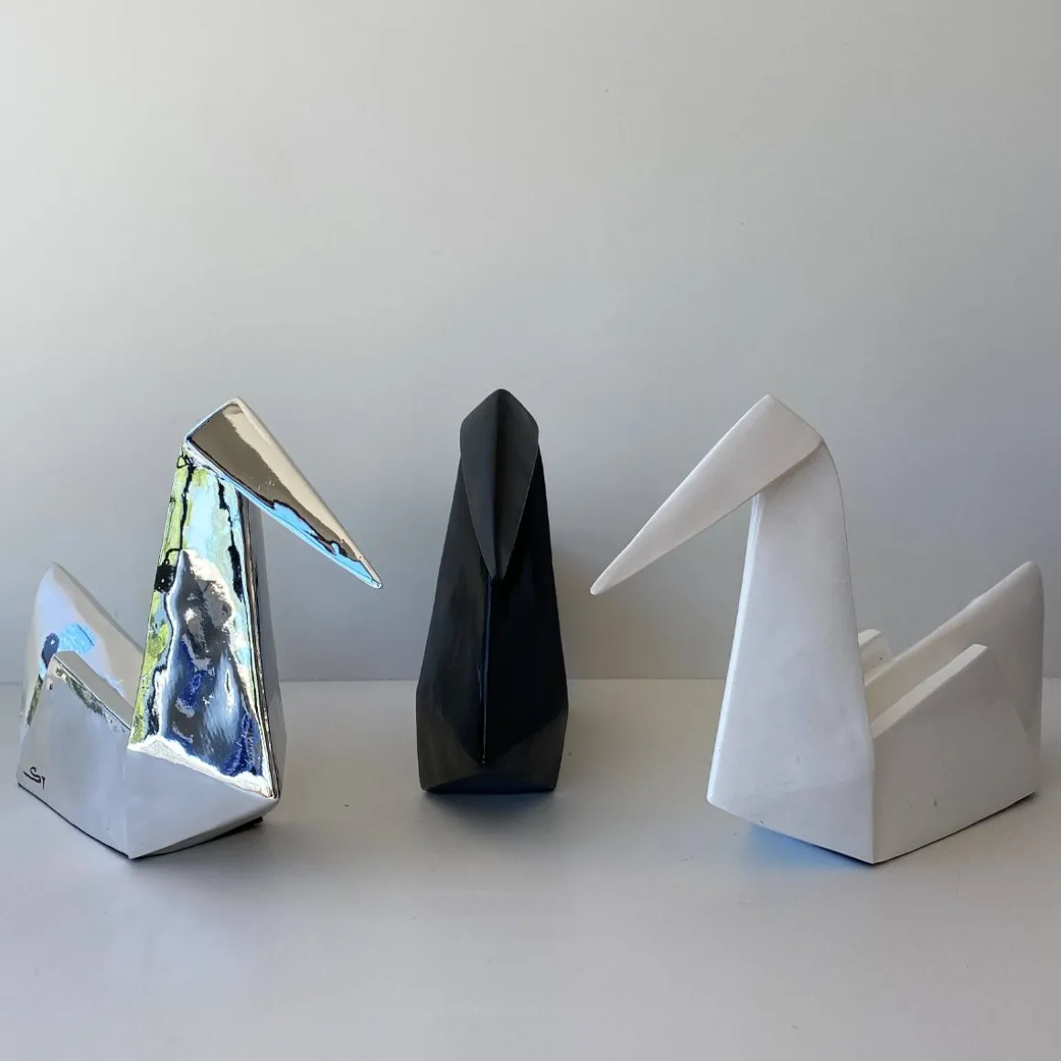 Envie d’un oiseau à l’allure majestueuse ? La sculpture Cygne Origami d’Artypopart, créée par le designer SJ, est une pièce de décoration fascinante. Symbole de pureté, d’élégance et de sérénité, elle réinvente la forme gracieuse de l’animal grâce au style polygonal, lui conférant un rendu moderne, géométrique et angulaire. La finesse de son bec contraste avec la robustesse des facettes, créant une tension visuelle captivante. Déclinée en finitions sophistiquées – du chrome miroir (comme illustré) à la laque monochrome (blanc pur, noir profond) – cette sculpture capte la lumière et sublime instantanément l’espace.