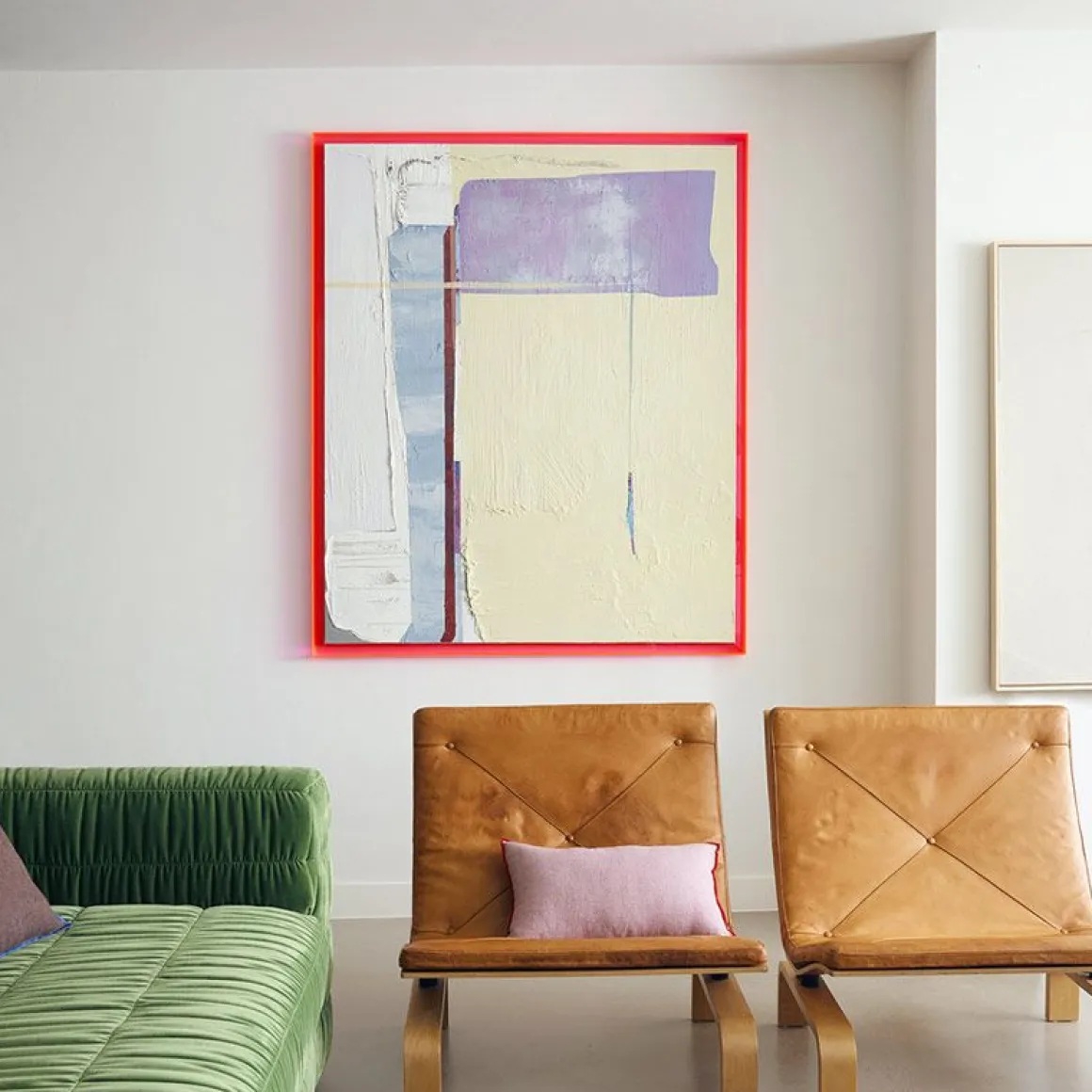 Nous croyons qu’une maison n’est pas complète sans avoir une œuvre d’art sur le mur. Nos ajouts d’art mural sont primitifs mais contemporains, tous peints à la main, tous uniques. Les œuvres d’art sont associées à un cadre futuriste en plexiglas.
