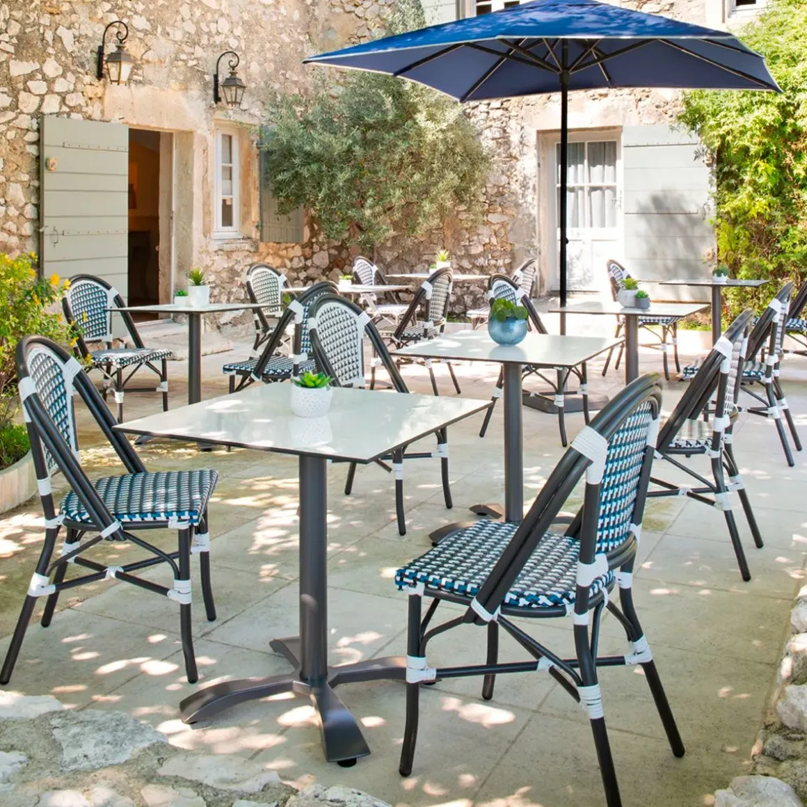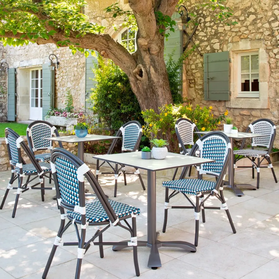 Demoiselle, demoiselle de Vlaemynck. Avec ses fauteuils de terrasse Demoiselle, Vlaemynck renoue avec le charme intemporel et un brin rétro des mythiques bistrots parisiens. Comme son nom l’indique, la collection Demoiselle incarne à elle seule l’élégance de l’art de vivre à la française. Dans une ambiance bistrot moderne, elle décline des fauteuils cannés aux accents très Art Déco. On craque pour leur motif exclusif dessiné par le bureau de style Vlaemynck et tressé à la main sur une structure aluminium. Un subtil compromis entre savoir-faire ancestral et design urbain. Incontournables des troquets en vogue, les fauteuils terrasse bistrot de la collection Demoiselle s’invitent également sur les terrasses des restaurants ou les balcons des hôtels où ils remportent tous les suffrages.