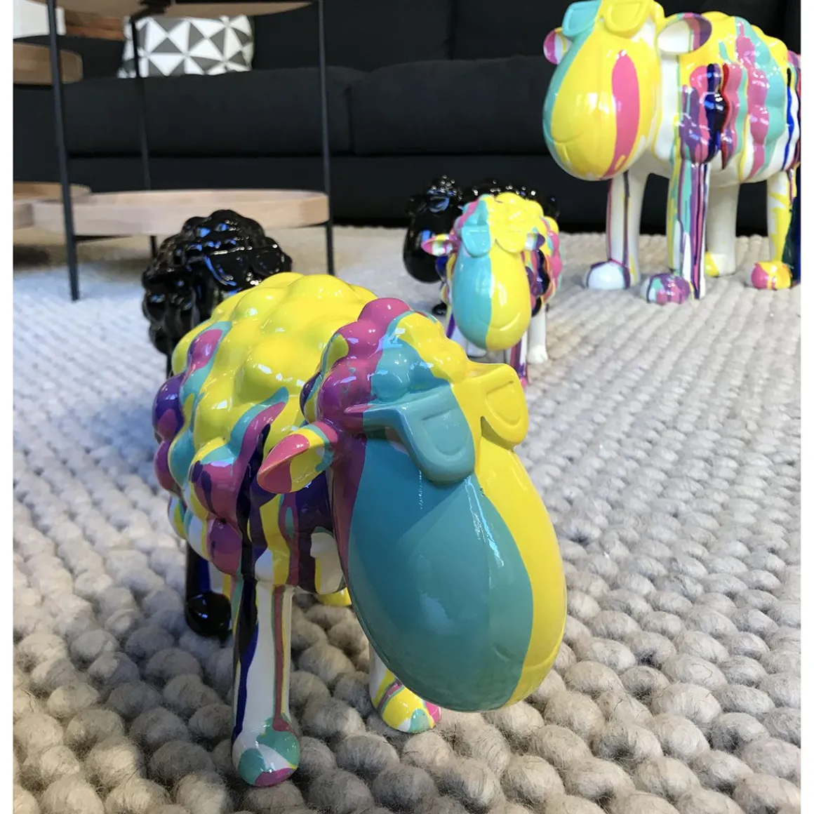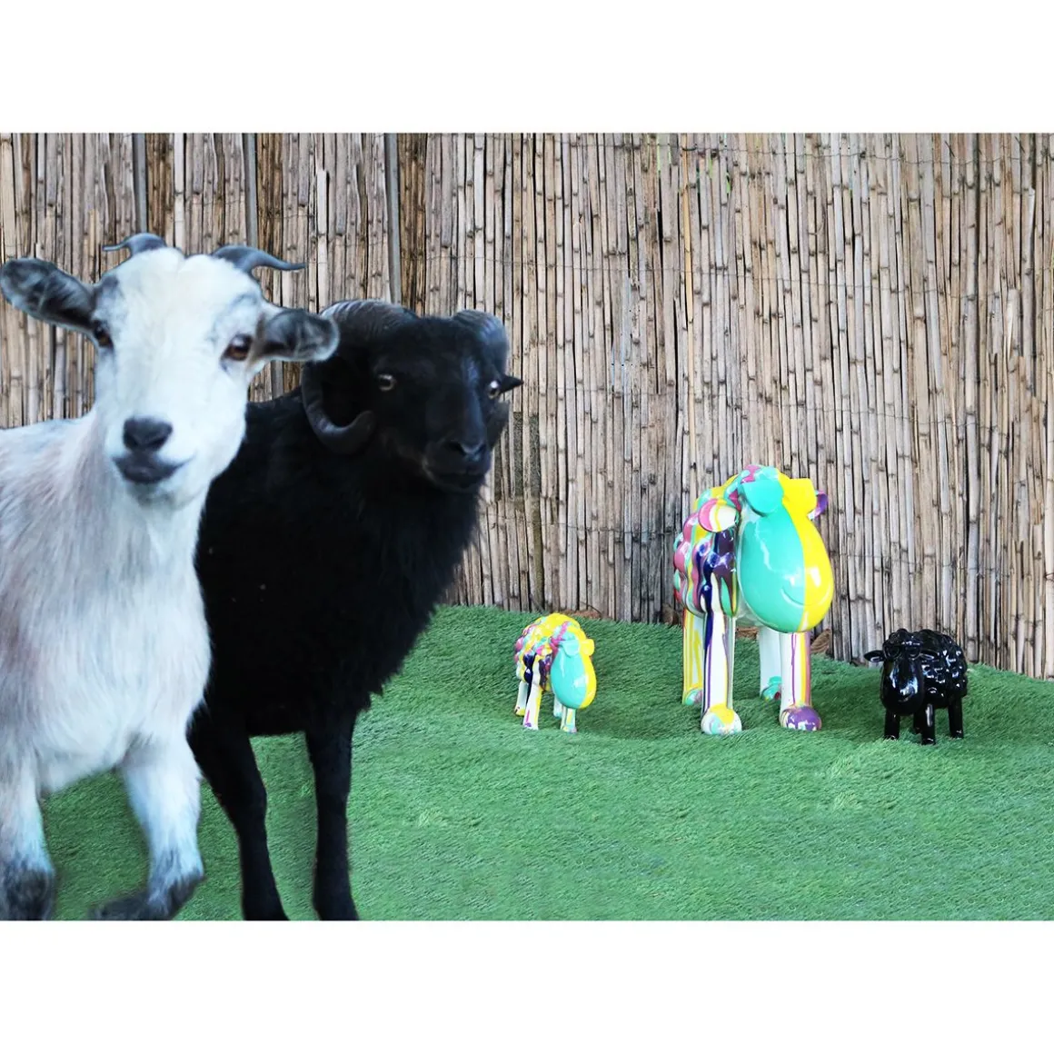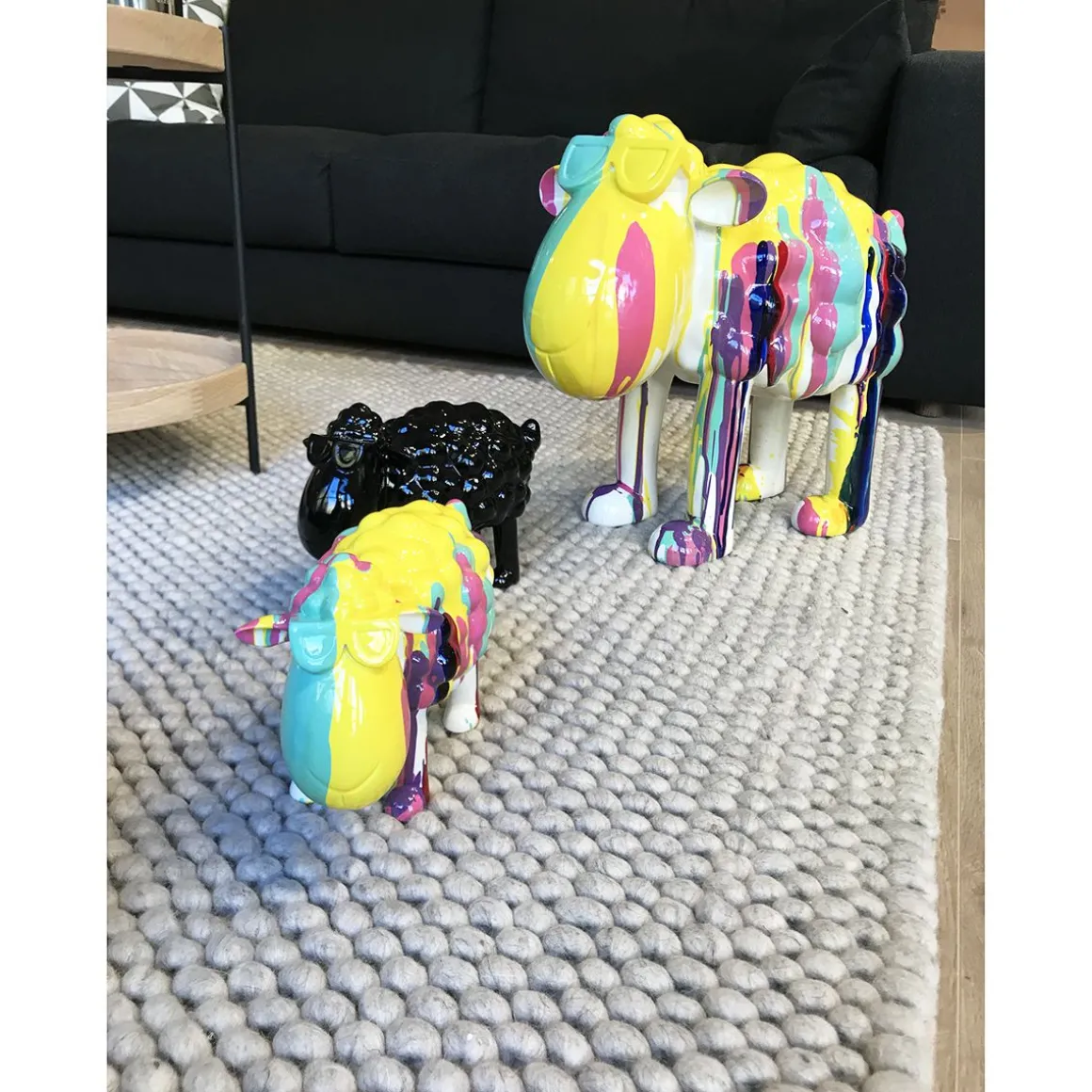 Cette pièce est une explosion de couleurs, caractéristique du style Pop Art d’Artypopart. La peinture coulante (drip painting) sur la toison de Deniro apporte une énergie et un dynamisme inégalés, faisant de cette statue un véritable point focal joyeux. En plus de son esthétique décalée, Deniro véhicule un message écologique fort, rappelant son rôle d’agent d’entretien écologique ! Les chèvres, qui se régalent de mauvaises herbes et escaladent tout sur leur passage, sont l’alternative parfaite et amusante à la tondeuse à gazon. Deniro apporte ainsi un message de simplicité et de nature dans votre foyer.