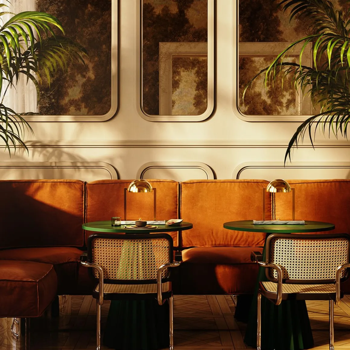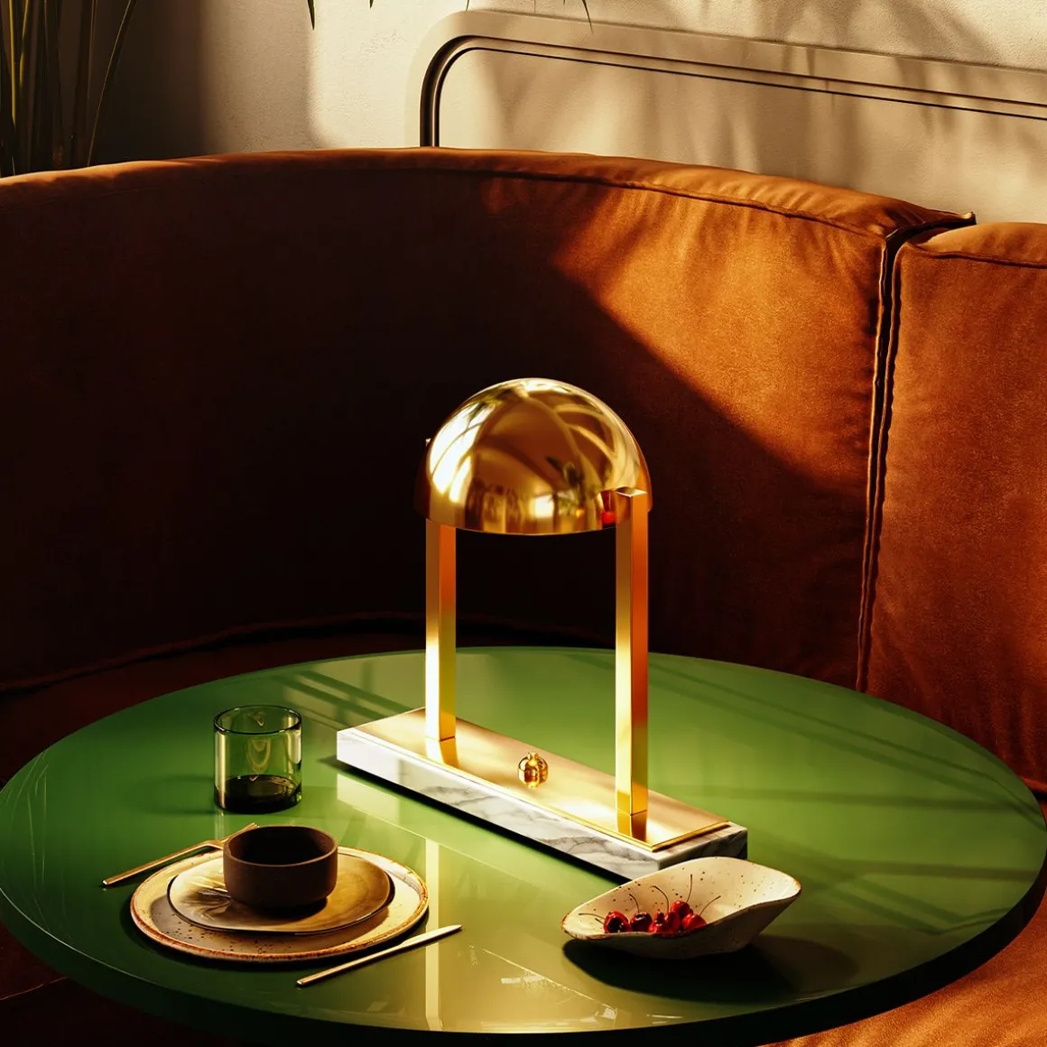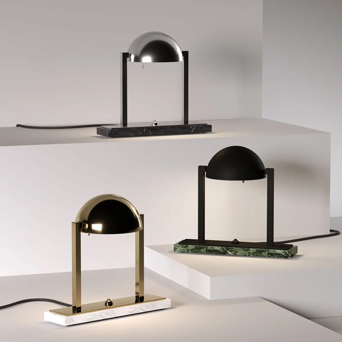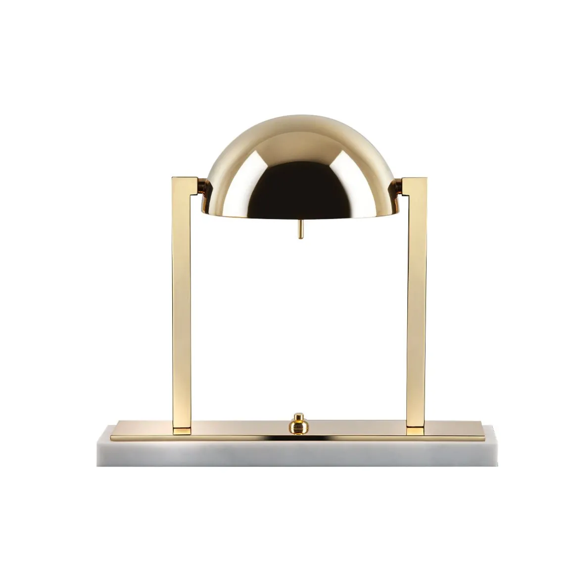 Lampe à poser au design unique, Diane a été imaginée par Jacques Adnet dans les années 1930. Sa géométrie moderniste parfaite se combine harmonieusement avec le raffinement des matériaux, évoquant les images d’un lever de soleil rougeoyant s’élevant lentement à l’horizon. Lampe de table composée d’une calotte hémisphérique métallique orientable avec deux bras latéraux en laiton. Elle repose sur une double base rectangulaire en laiton et soit en marbre noir Marquina, soit en marbre blanc de Carrare. Disponible en finitions Palladium ou Or fin.