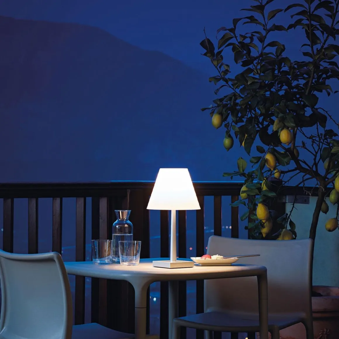 Dina+ est une lampe de table composée d’un diffuseur en polycarbonate et d’une structure en aluminium qui supporte la LED et les optiques en polycarbonate. Sur la base de la lampe, a été inséré un bouton pour le réglage de la lumière et une prise USB pour recharger un appareil électronique. Dina + est également équipé d’une batterie rechargeable qui lui permet d’être utilisé et déplacé librement dans la maison, dans le jardin ou partout où vous avez besoin de lumière, sans avoir à la brancher.