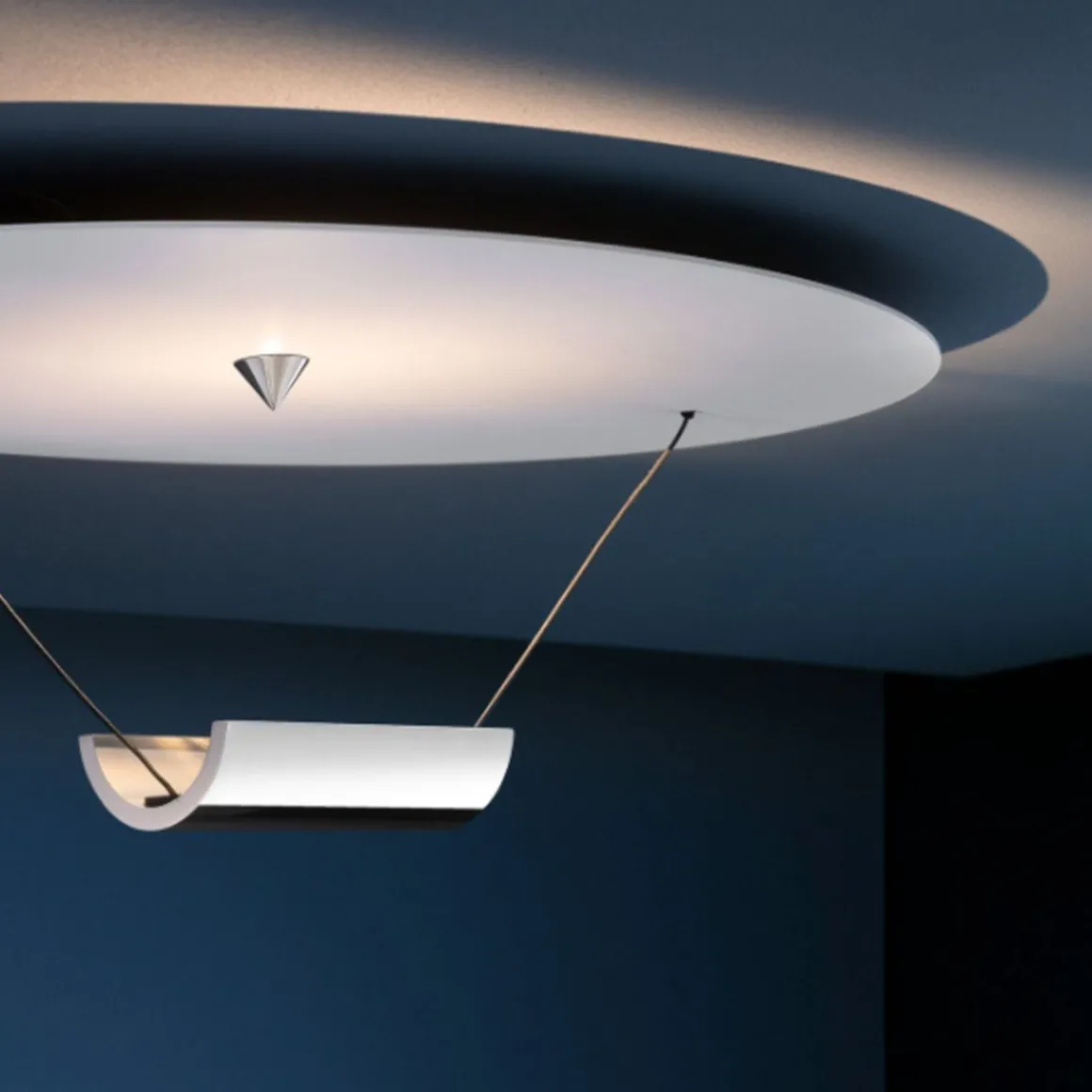 DiscO est un plafonnier qui réinterprète le «Disco» halogène historique en conservant son design original. Équipé d’une source de lumière LED de dernière génération, DiscO présente des fonctionnalités innovantes, technologiquement avancées et un nouveau disque de forme ovale.