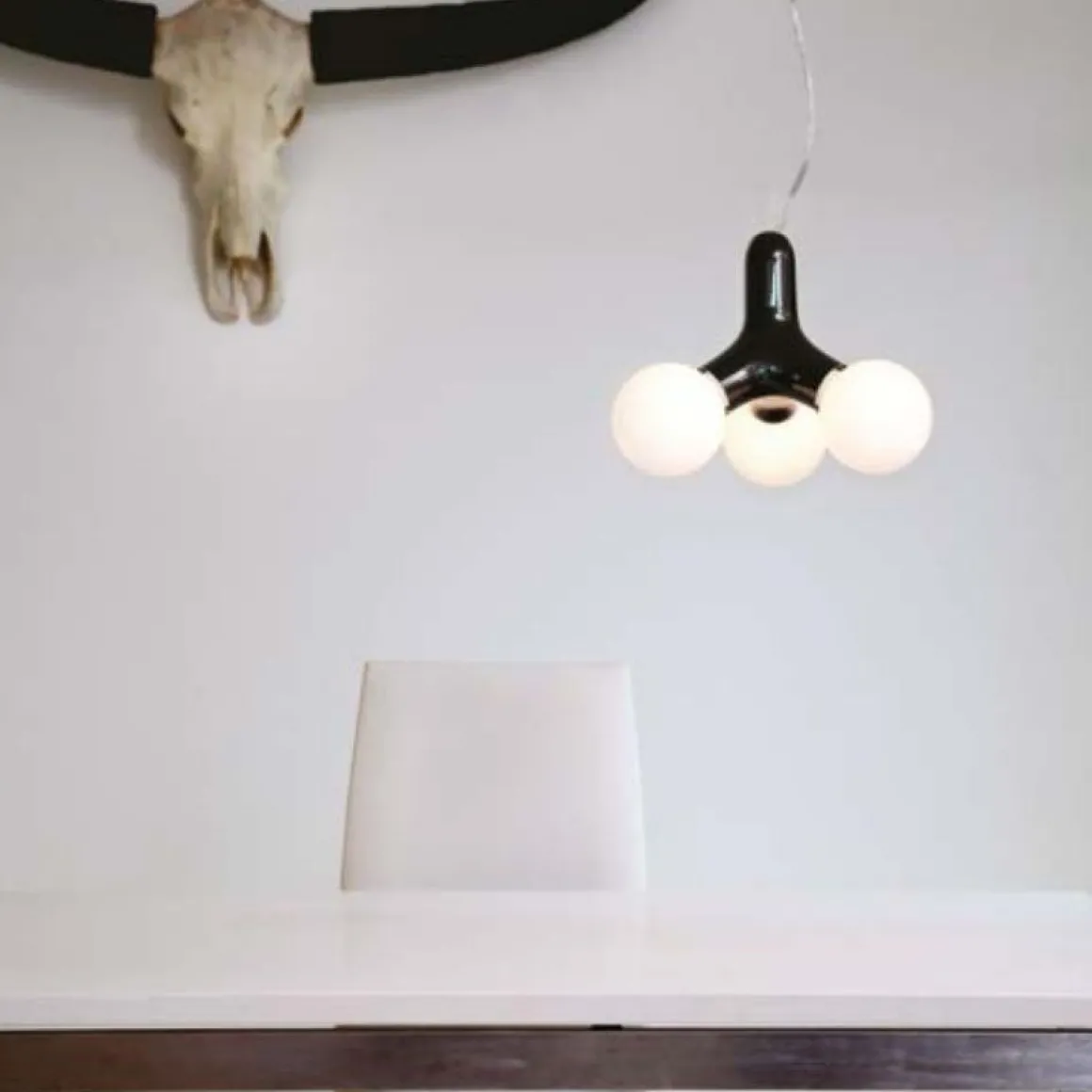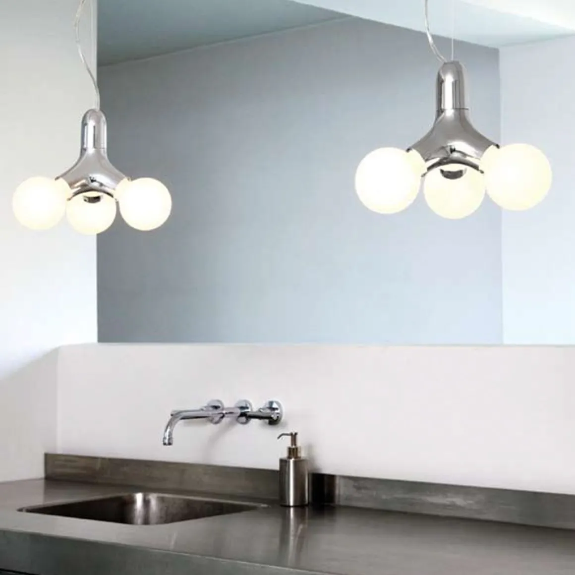 3 ampoules Globe E27 incandescentes 40W ou LED 4,9W ou fluorescentes 5W max (non fournies)