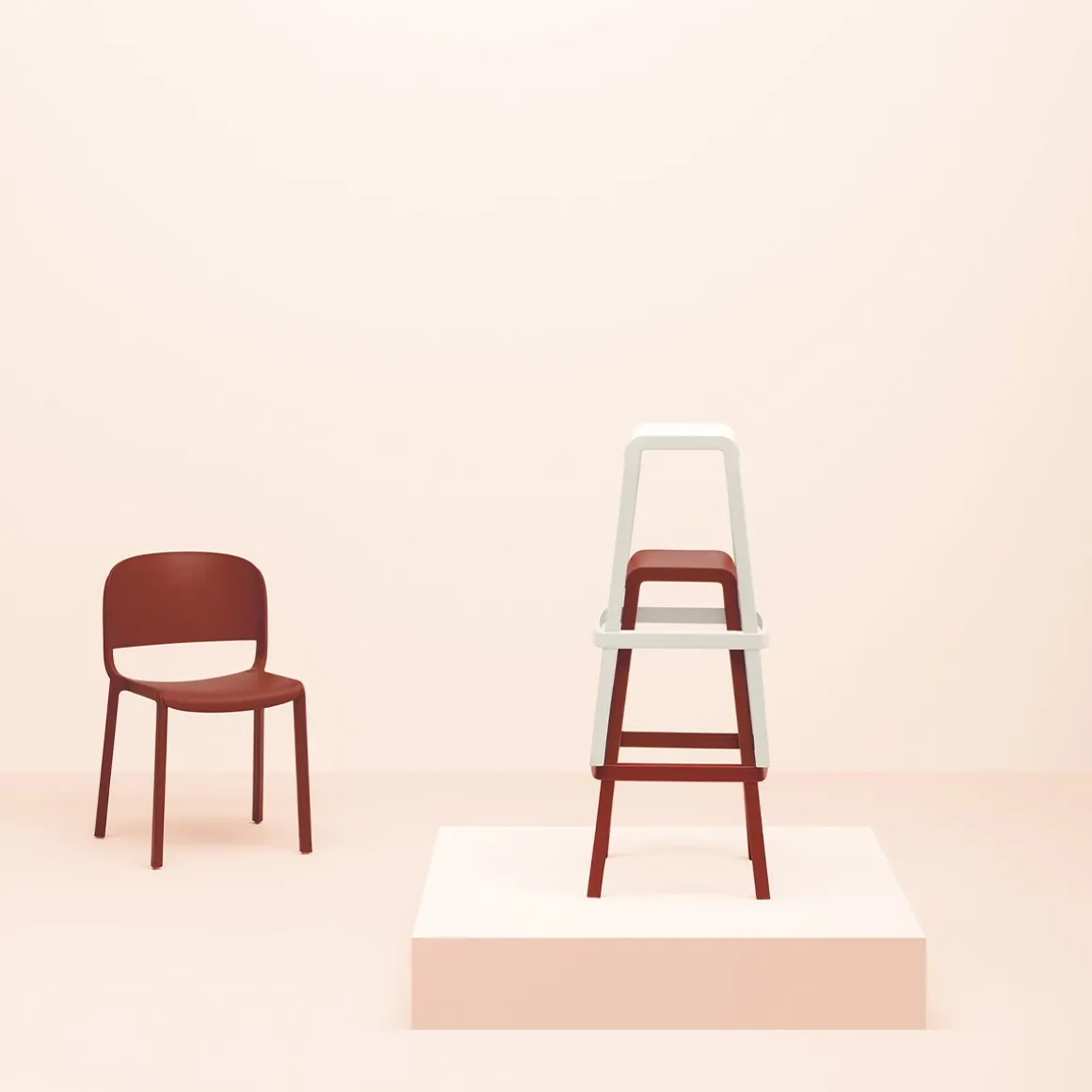 Dome est une collection d’assises qui rappelle la célèbre tradition des chaises pour bistrot avec leurs silhouettes arquées et les formes importantes des cupules des monuments qui enrichissent beaucoup de villes dans le monde entier. Détails délicats du polypropylène rappellent la coupe du bois en dessinant une assise sans accoudoirs.
