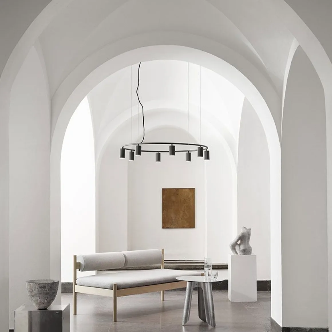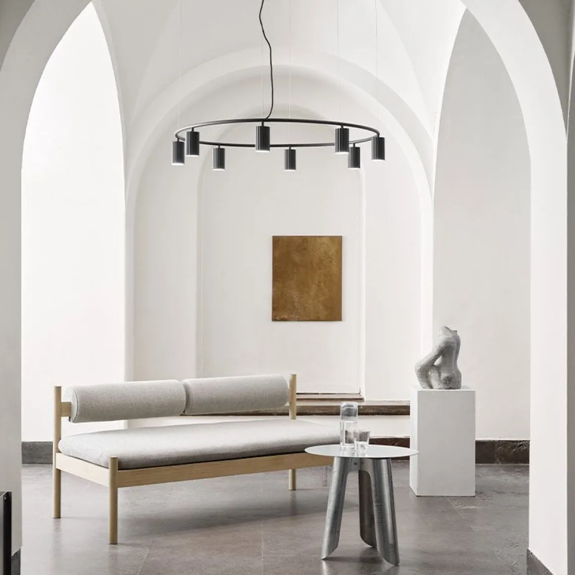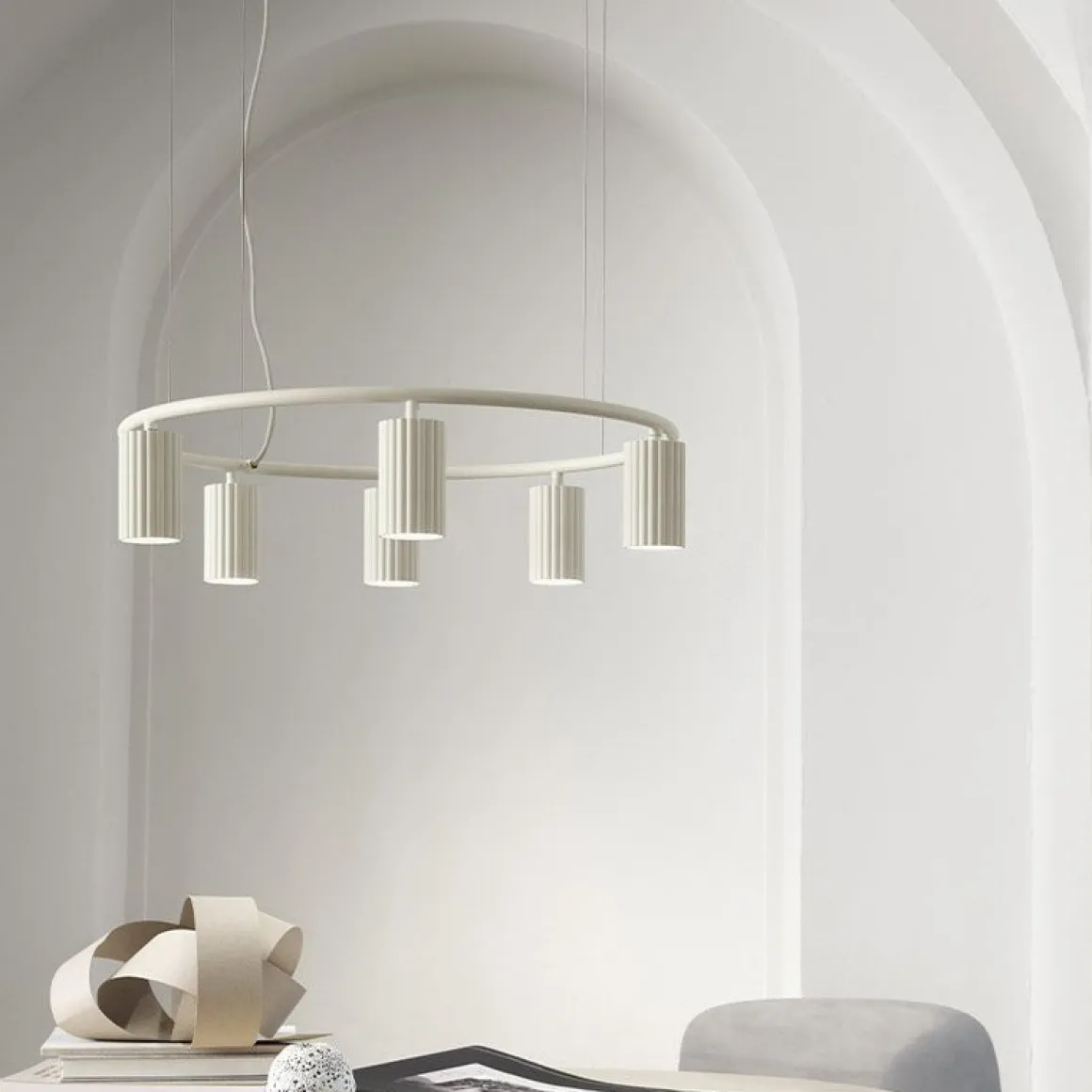 La suspension Donna projette la sensation d’un textile plissé doux, bien qu’elle soit en fait fabriquée à partir d’aluminium fin et léger. Sa forme s’inspire des tissus chics utilisés dans la haute couture et des défis de créer cette douceur en utilisant un matériau dur au lieu d’un textile. Une belle pièce polyvalente avec une personnalité expressive; également à l’aise dans tous les environnements. Pour les grands espaces, la Donna Line et la Donna Circle peuvent être sélectionnées en quatre, six ou huit variantes de lampe, projetant une lumière directe chaude vers le bas.
