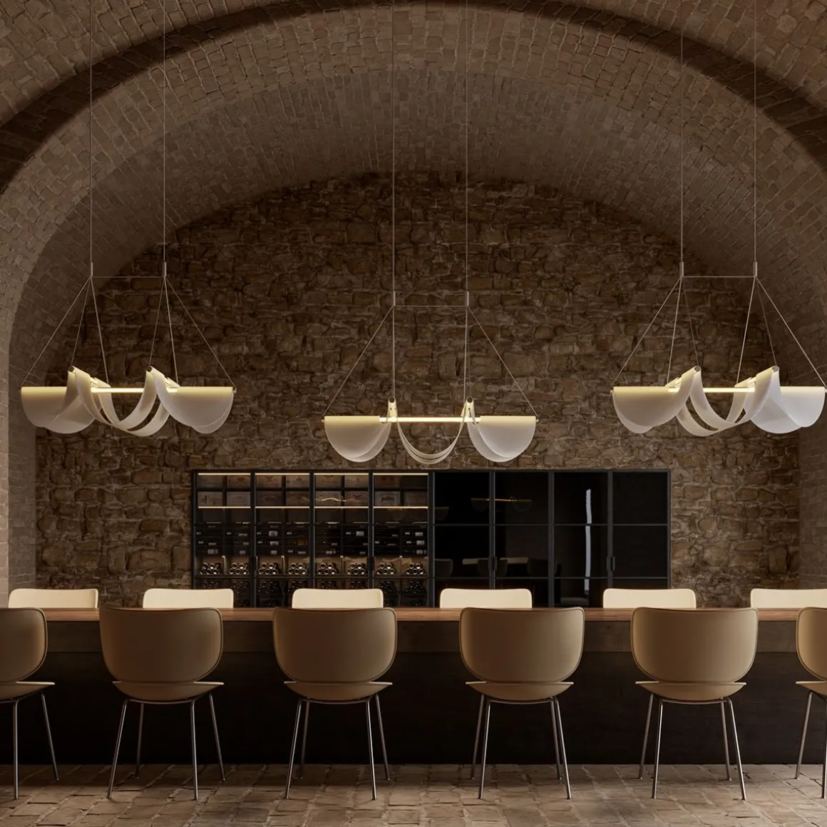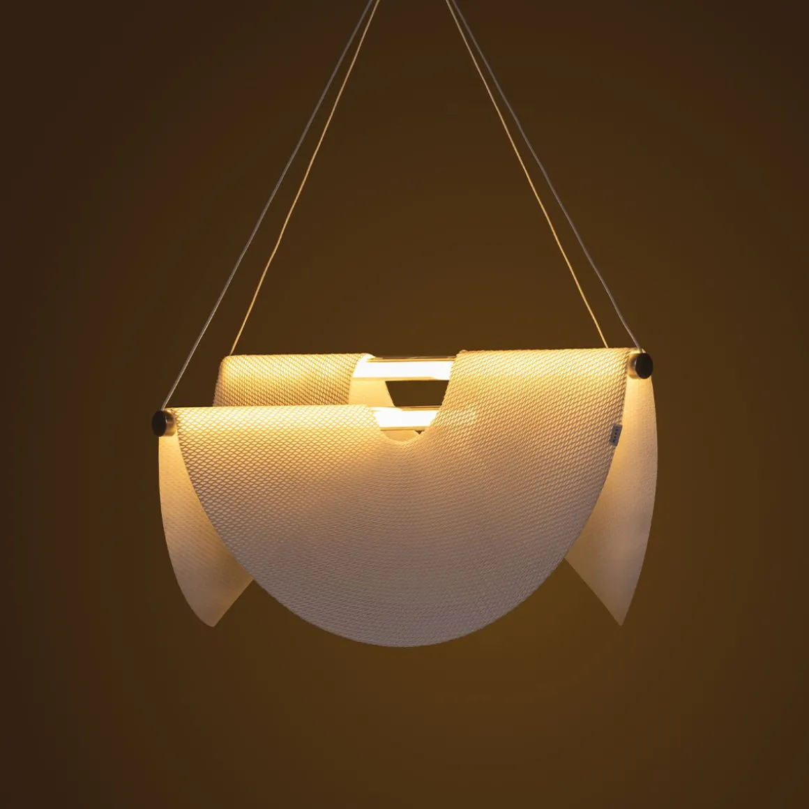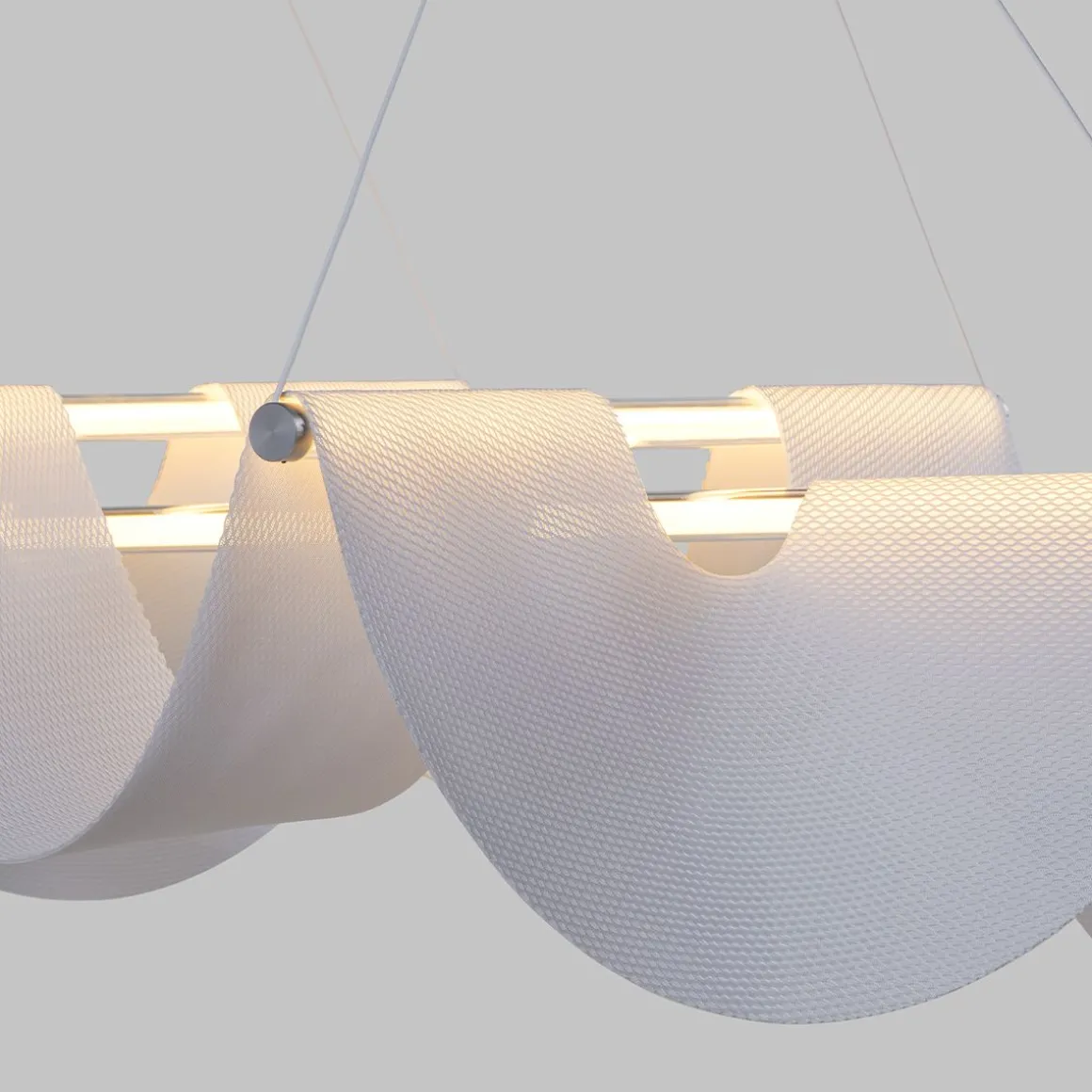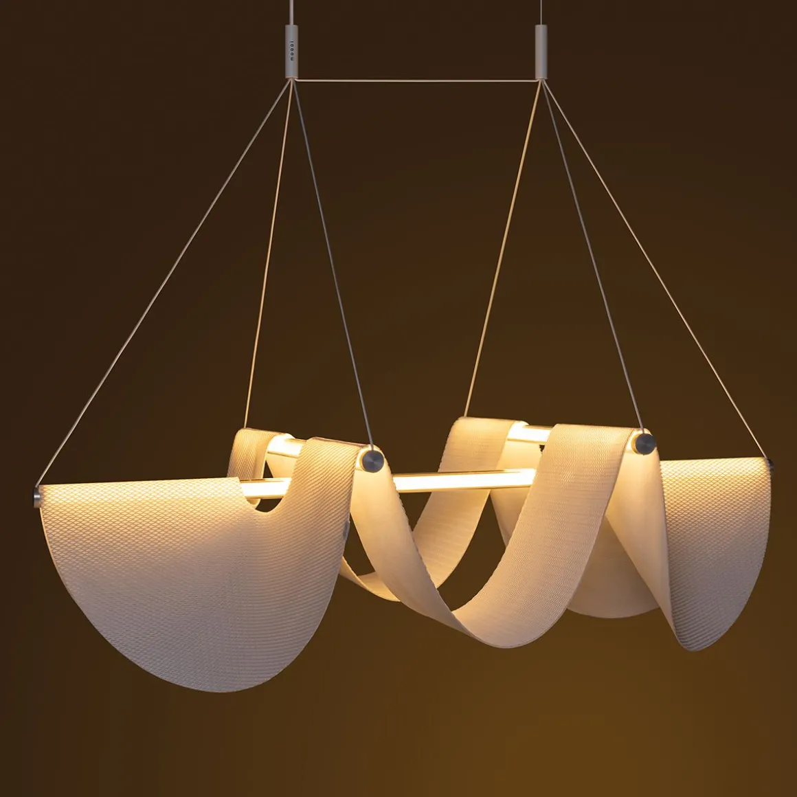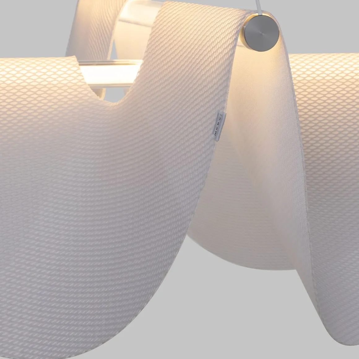 Matériaux : tubes de verre avec détails en aluminium, tissus PL tricoté 3D drapé