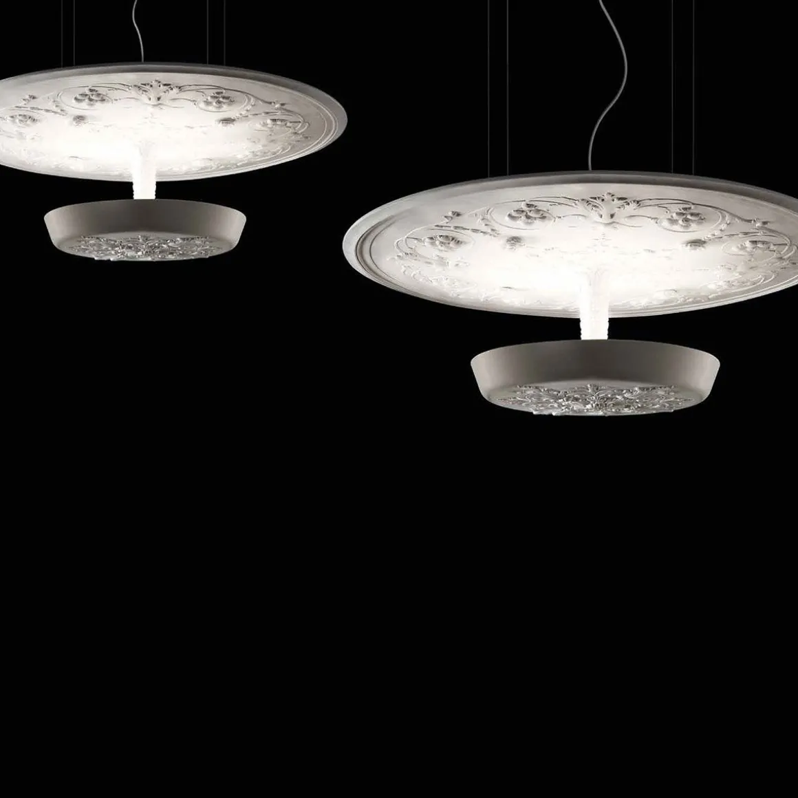 Drill est une collection de luminaires en plâtre orné de décorations.