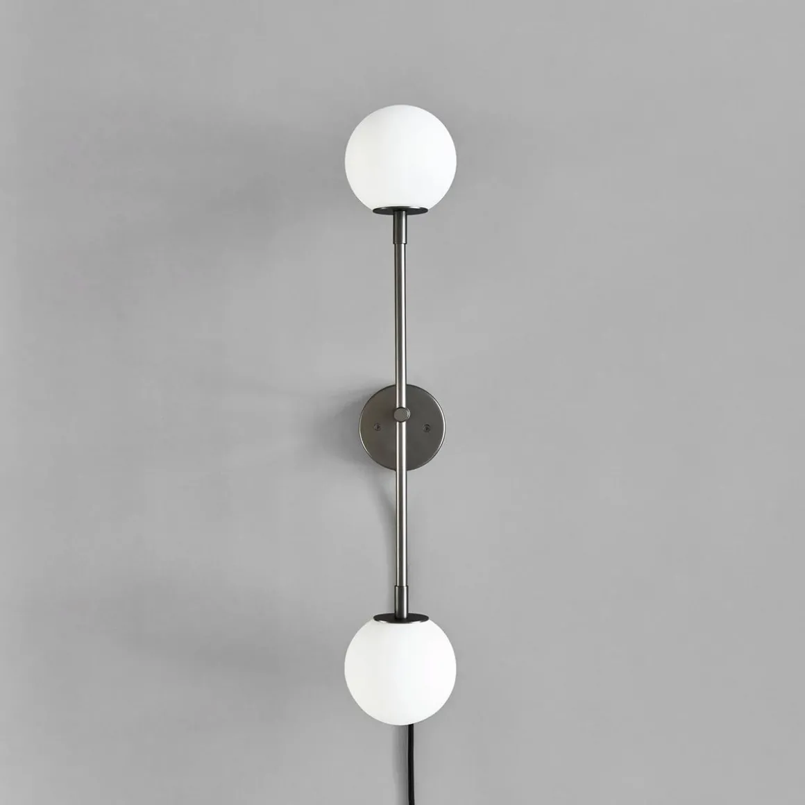 Sa suspension détaillée a des références industrielles et maritimes et est magnifiquement conçue en métal plaqué, qui est ensuite brossé à la main pour obtenir la finition parfaite pour compléter les abat-jour circulaires en verre opale. Alors que la collection The Drop Chandelier Bulb rend hommage aux conceptions de lampes emblématiques et modernistes des années 1950, elle célèbre également une approche expérimentale et innovante avec ses 14 bras réglables flexibles et fonctionnels – créant d’innombrables options et variations. Le lustre et l’applique éclairent élégamment la pièce d’une lumière chaleureuse et deviennent un objet sculptural au plafond et au mur.