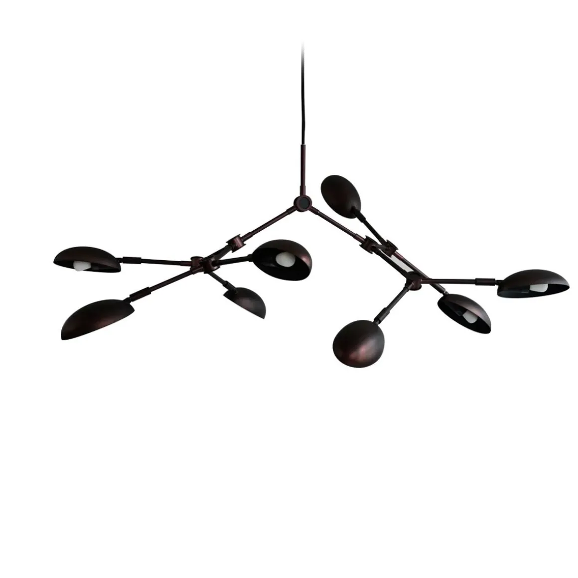 La série Drop est une famille d’abat-jour en forme de goutte, avec ses 14 bras ajustables et ses abat-jour légèrement incurvés, le lustre Drop embrasse un éclairage flexible et fonctionnel. La collection s’inspire du modernisme danois et de l’approche emblématique et expérimentale des années 1950 en matière de conception d’éclairage. La suspension détaillée des lampes s’inspire de références industrielles et maritimes, et est magnifiquement fabriquée en métal oxydé, plaqué et perforé puis brossé à la main. Les abat-jour peuvent être ajustés dans de multiples angles différents, permettant à l’utilisateur de créer une atmosphère spécifique et unique.