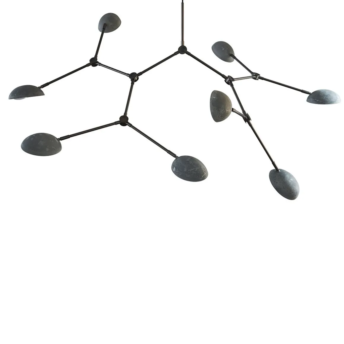 On sent presque le mouvement du Drop Chandelier. En tant que sculpture fluide, elle prend l’espace et insiste sur une vie propre. Alors que la collection Drop Chandelier honore les conceptions de lampes modernistes des années 1950, elle célèbre également une approche expérimentale et innovante avec ses abat-jour légèrement incurvés et ses 14 bras réglables flexibles et fonctionnels – créant d’innombrables options, variations et angles. Le corps en métal oxydé, plaqué et perforé magnifiquement conçu est ensuite brossé à la main et la lampe illumine la pièce avec élégance d’une lumière chaude et agréable.