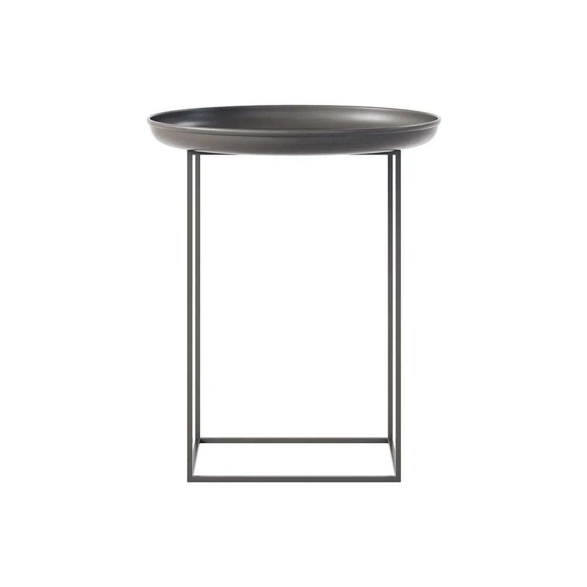 Une série de tables d’appoint et de tables basses multifonctionnelles avec un plateau en métal filé placé librement sur un cadre en métal. Fabriquée en acier thermolaqué, la table Duke est un meuble multifonctionnel disponible en trois tailles différentes. Le dessus du plateau peut facilement être soulevé et la base peut être tournée à différentes hauteurs. La combinaison des trois tailles crée un paysage qui complète n’importe quel décor.
