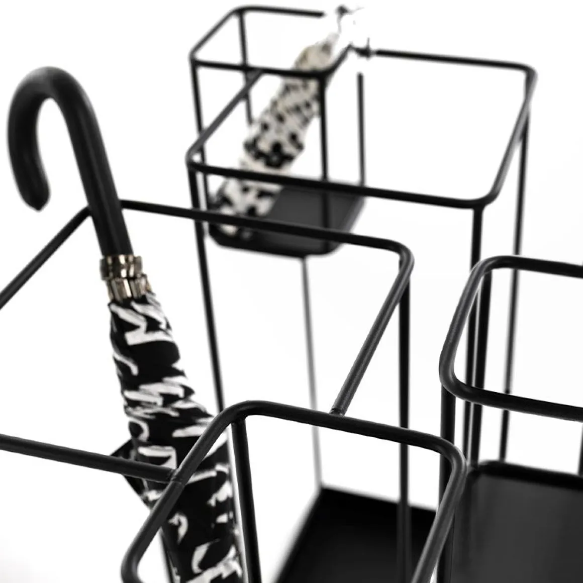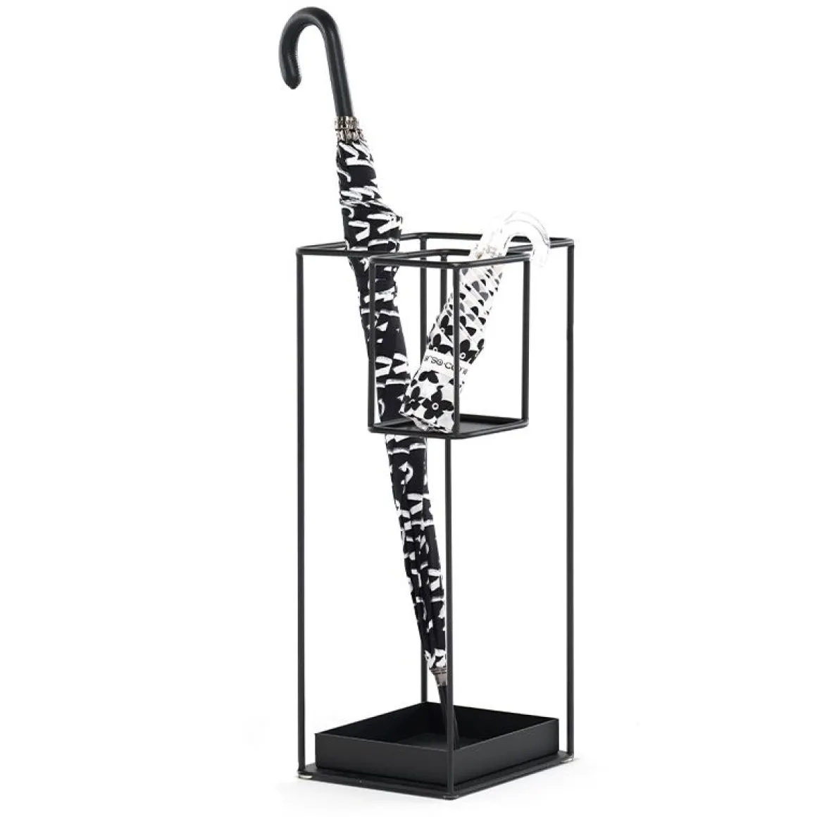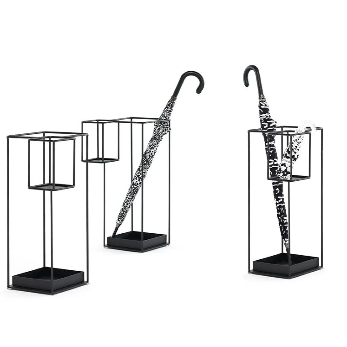 Duo est un porte-parapluie en métal peint en noir. C’est un accessoire utile aux lignes simples qui peut accueillir aussi bien des parapluies pliants classiques que petits.