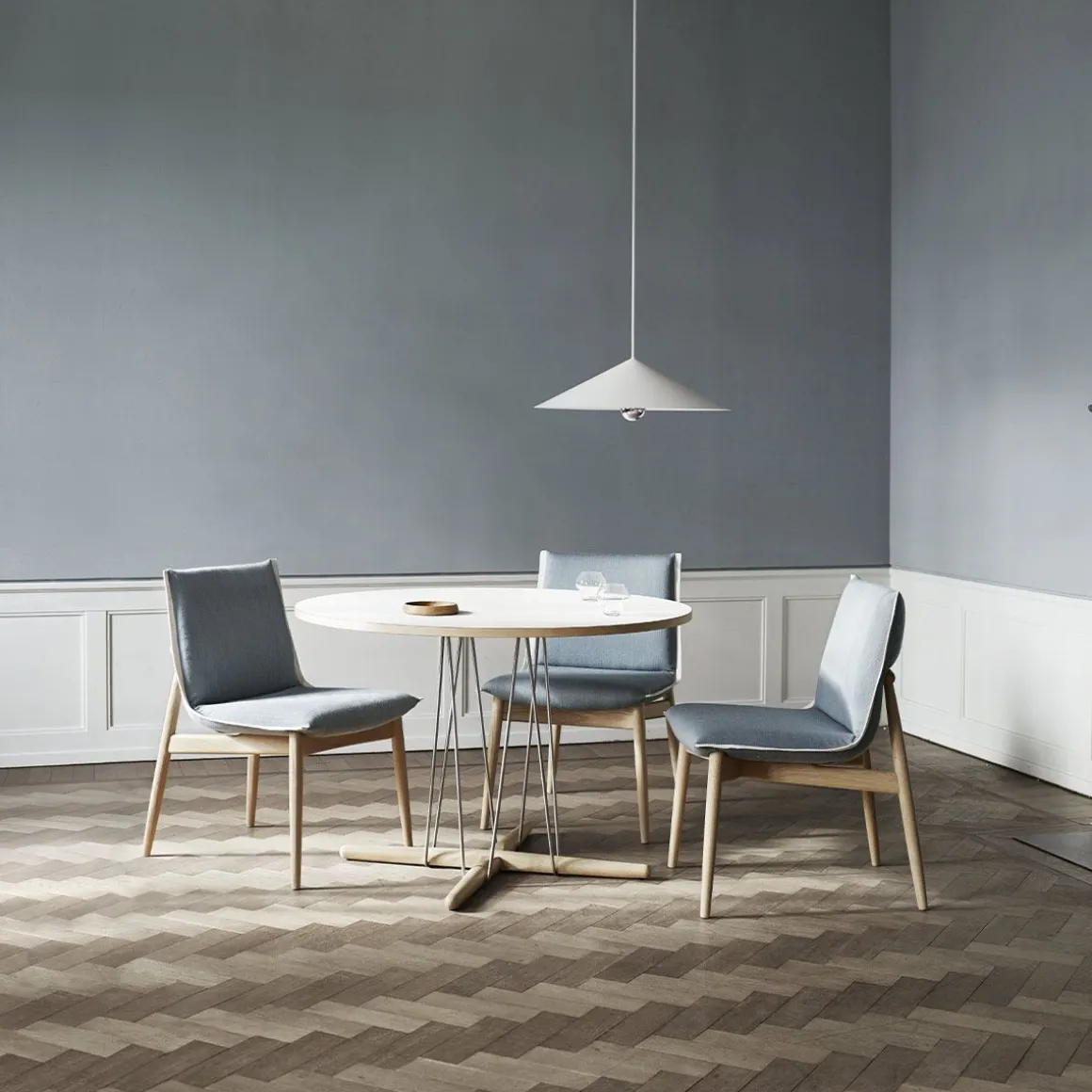 La chaise Embrace est un ajout 2019 à la série Embrace du trio de designers autrichiens EOOS. Visuellement légère dans son expression, la chaise n’a pas d’accoudoirs et prendra moins de place, s’adaptant à n’importe quelle table. La conception permet une grande liberté de mouvement, une qualité qui permet aux utilisateurs de communiquer et d’interagir librement. La tapisserie d’ameublement est pliée dans deux dimensions et l’air détendu de la tapisserie d’ameublement contraste le cadre en bois parfaitement formé. Il témoigne de l’unité entre l’artisanat et l’héritage de Carl Hansen & Søn et l’approche de conception innovante d’EOOS.