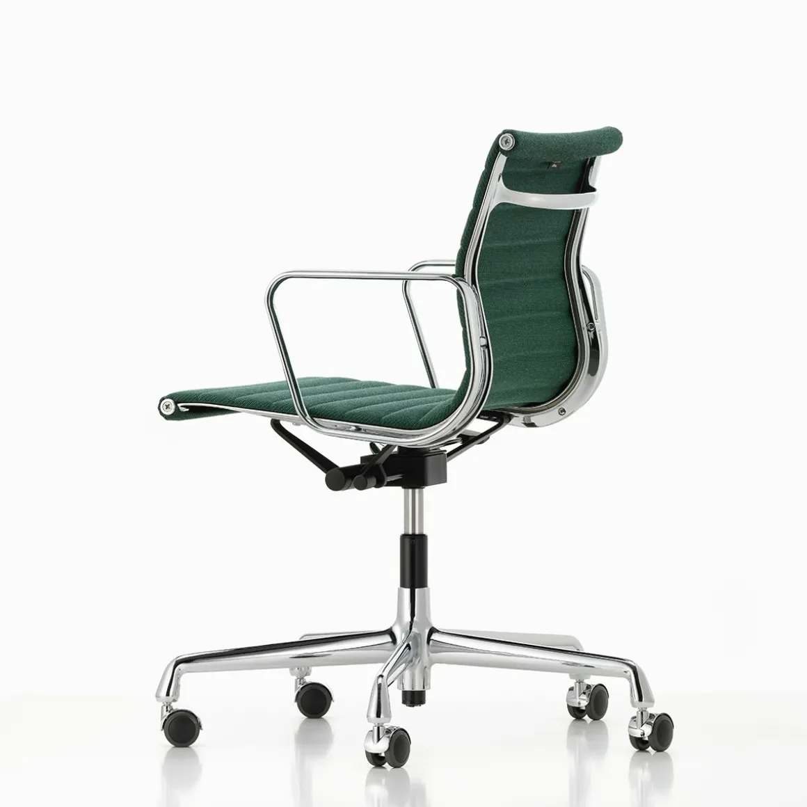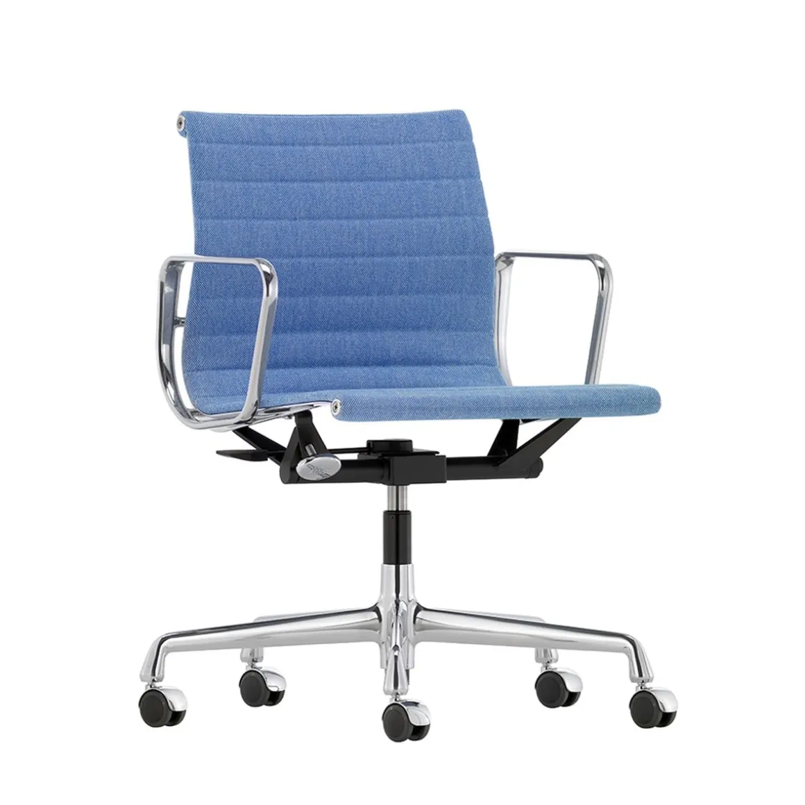 Fauteuil de bureau EA 118 de Charles et Ray Eames – ajoute une présence emblématique aux environnements de bureau prestigieux. Ils sont équipés d’un mécanisme d’inclinaison qui peut être ajusté aux poids de l’utilisateur, assurant un confort optimal. Avec une large sélection de couleurs de rembourrage, il est facile de trouver la chaise parfaire pour chaque environnement de bureau. Le modèle EA 118 comme le EA 117 se distinguent de EA 119 par leurs dossiers plus bas. EA 118 a également un siège un peu plus étroit, et la position assise de ce modèle est plus particulièrement adaptée aux activités axées sur la table.