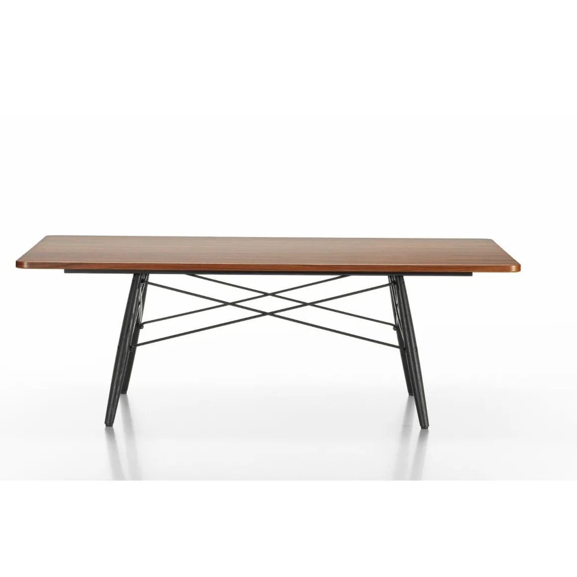 La réédition de la Eames Coffee Table, qui a été développée par Vitra en collaboration avec le Eames Office, évoque l’esprit des premières pièces uniques : fabriquée en matériaux raffinés, cette table basse de haute qualité est à la fois un objet précieux et un meuble utilitaire. Les plateaux carrés ou rectangulaires sont réalisés en placage de palissandre ou en noyer américain massif. Alliant des pieds en bois noir à des croisillons métalliques, le piètement offre une structure stable et souligne l’élégance discrète de l’Eames Coffee Table.