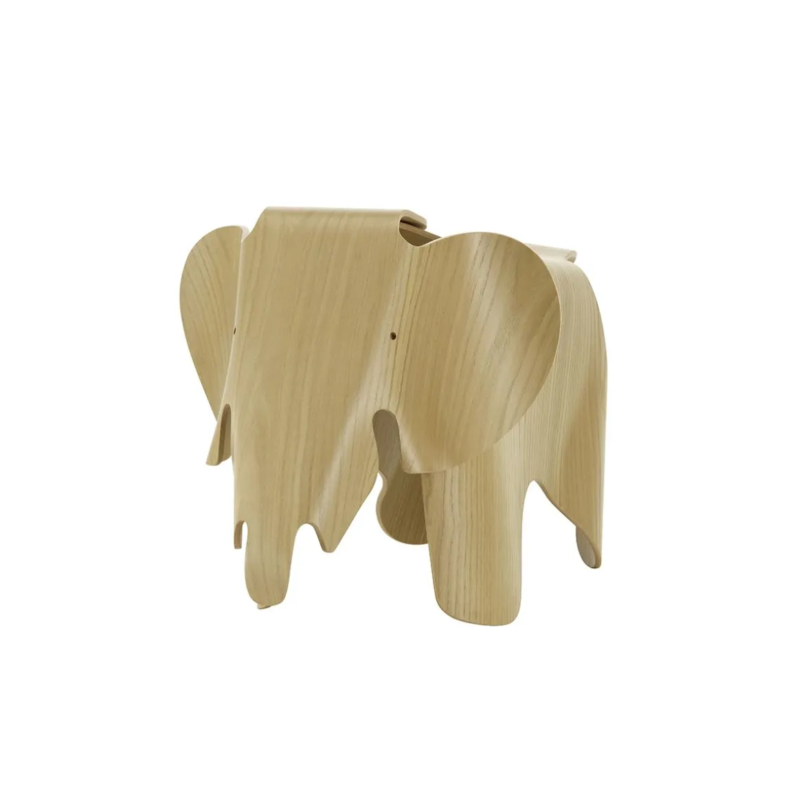En 1945, Charles et Ray Eames ont créé un éléphant jouet en contreplaqué. Cependant, cette pièce n’a jamais été produite en série. L’in des prototypes a été exposé aux Museum of Modern Art à New York en 1946 et existe encore aujourd’hui dans les archives de la famille Eames. Après une première édition limitée en 2007, Vitra a lancé la production en série du Eames Elephant en contreplaqué en 2018. Il est disponible en version foncée en noyer européen et en version claire en chataignier. Le charmant pachyderme existe égalemet dans la variante Eames Elephant RE fabriquée en plastique post-industriel recyclé, idéale pour les enfants, ainsi qu’en taille plus réduite dans le même matériaux, Eames Elephant (small) RE, les deux variantes se déclinant dans un assortiment de couleurs assorties.
