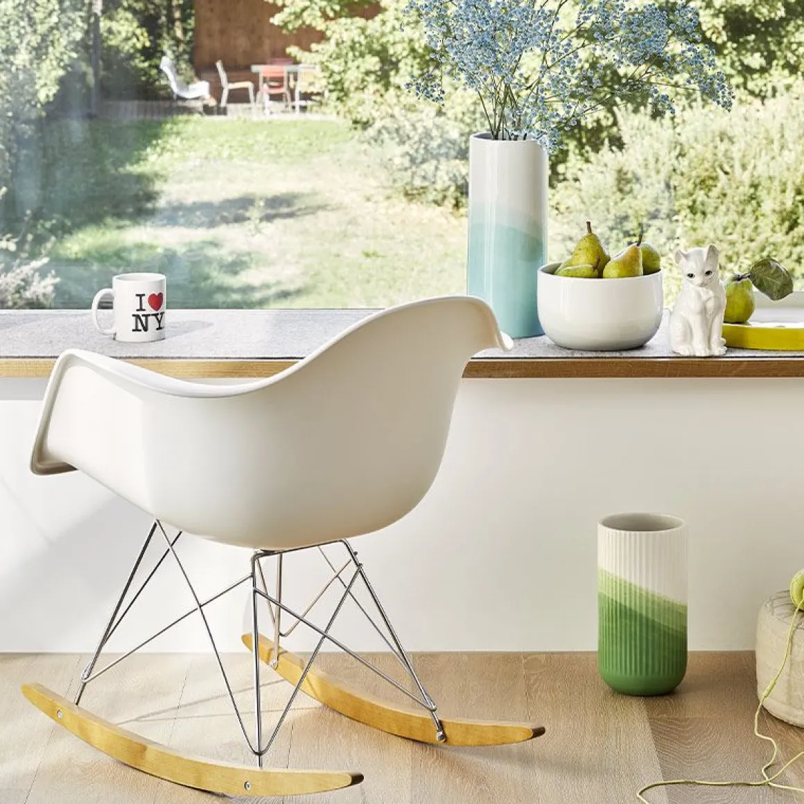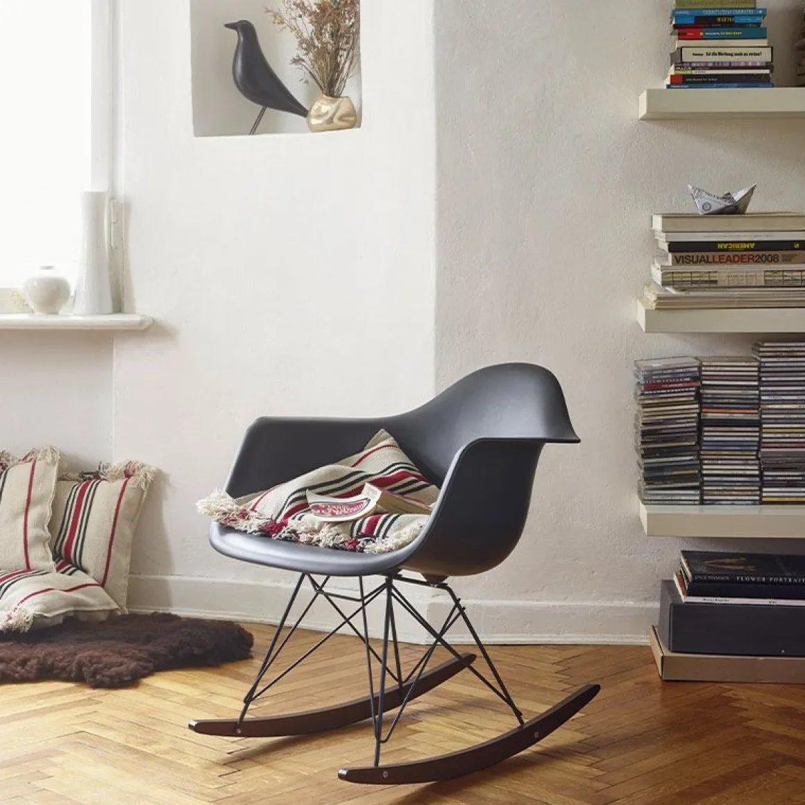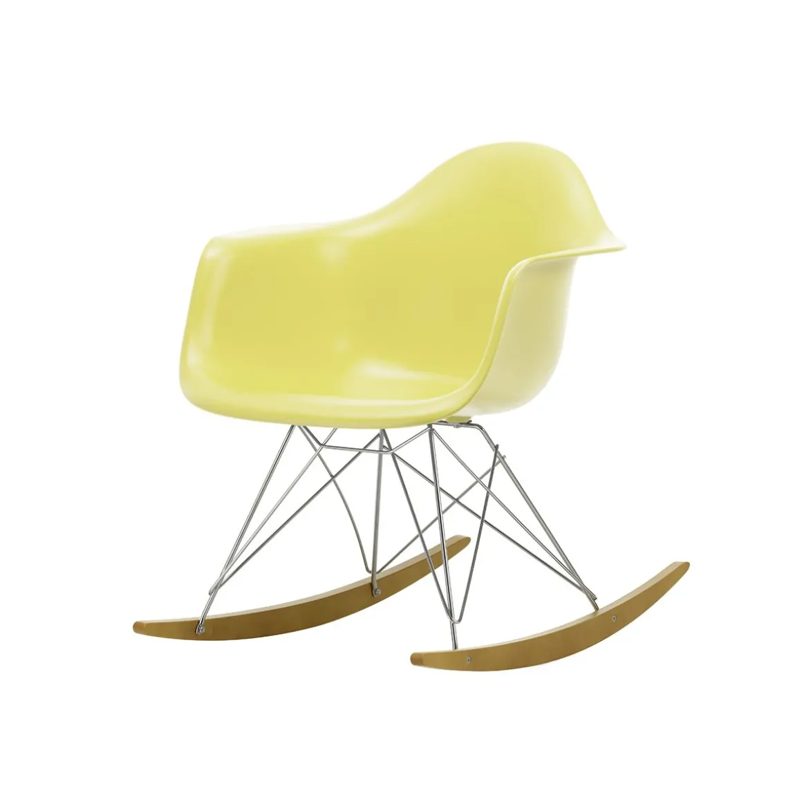 Les Plastic Chairs RE comptent parmi les créations les plus célèbres de Charles et Ray Eames. Un modèle s’est toujours démarqué de la vaste famille de chaises : le Rocking Armchair Rod Base (RAR). Malgré ses dimensions compactes, il offre un confort agréable même pour les utilisateurs de grande taille et la coque en plastique recyclé post-consommation est également disponible avec un coussin d’assise ou un rembourrage intégral. Le RAR est un fauteuil à part entière, dont la forme emblématique et le piètement à bascule sur patins en bois ajoutent non seulement un accent remarquable à tout salon, mais attirent également les regards dans les espaces lounge, les zones de détente et les salles d’attente.