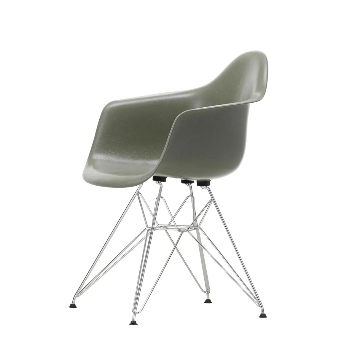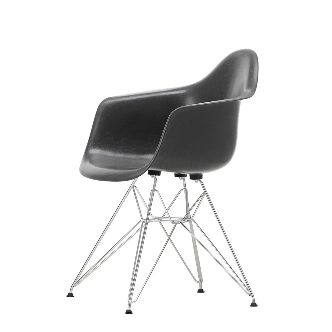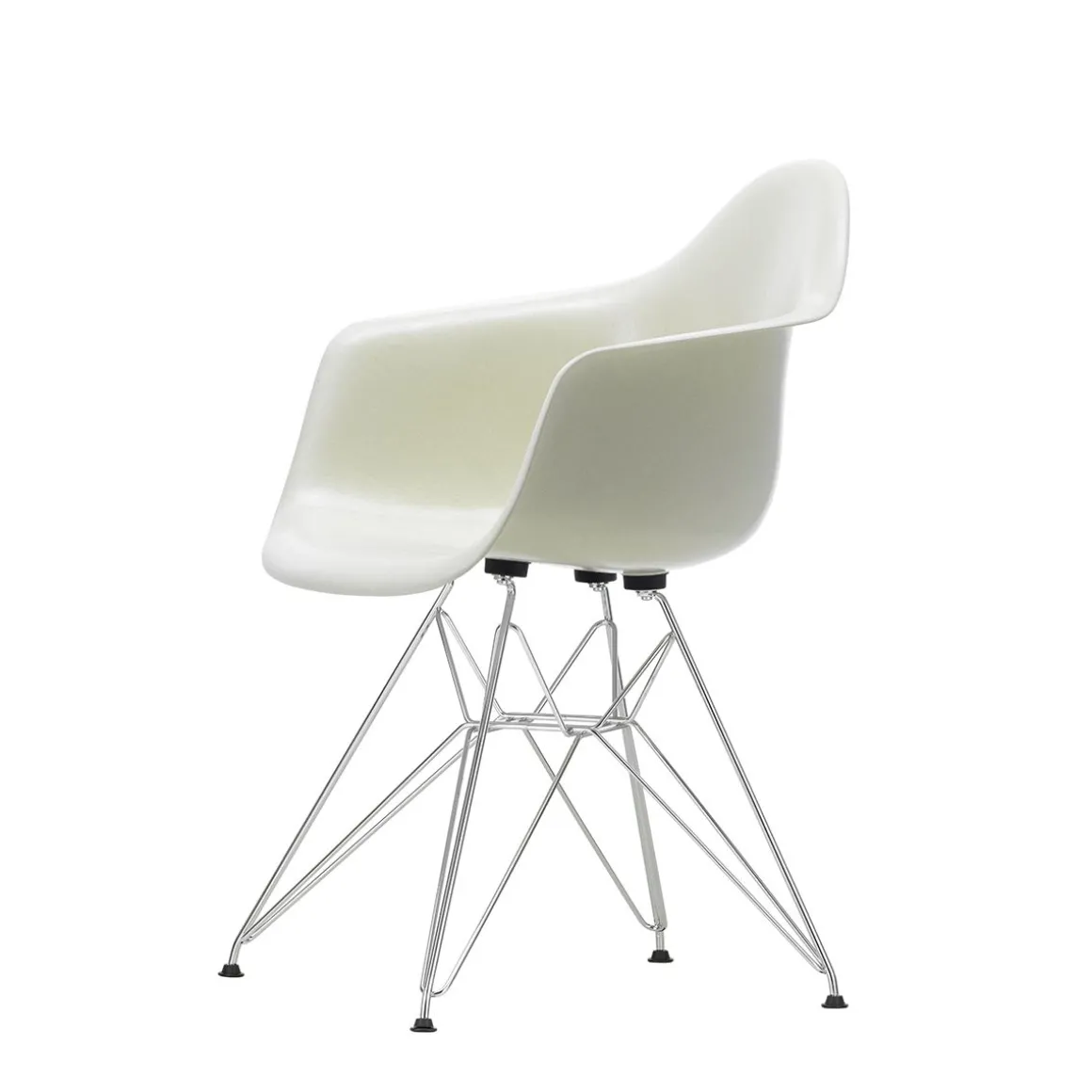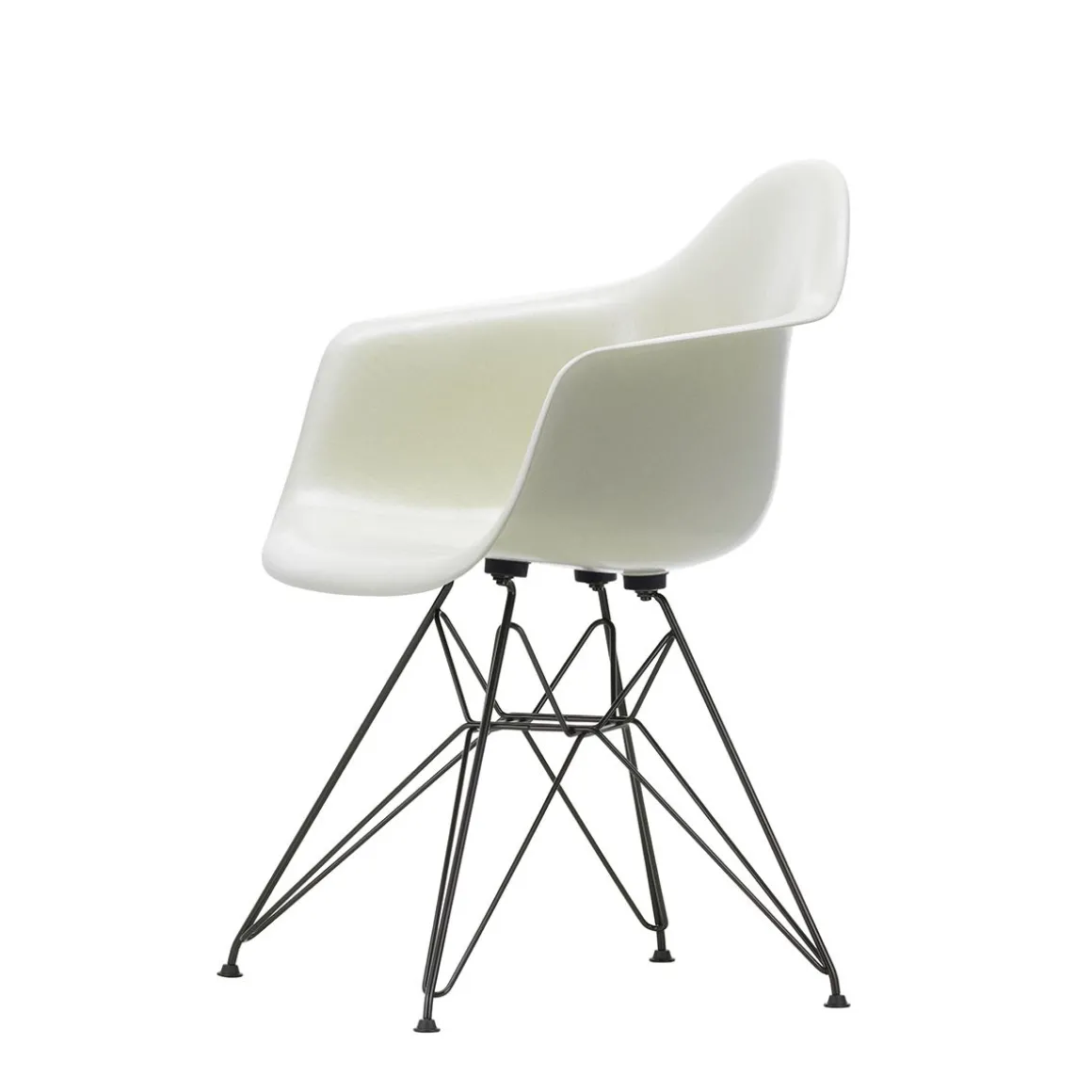 Le piètement dit « tour Eiffel » du siège DAR (Dining Height Armchair Rod Base), une construction complexe et gracieuse en fil d’acier, associe les formes élégantes et légères à une rigueur structurelle.