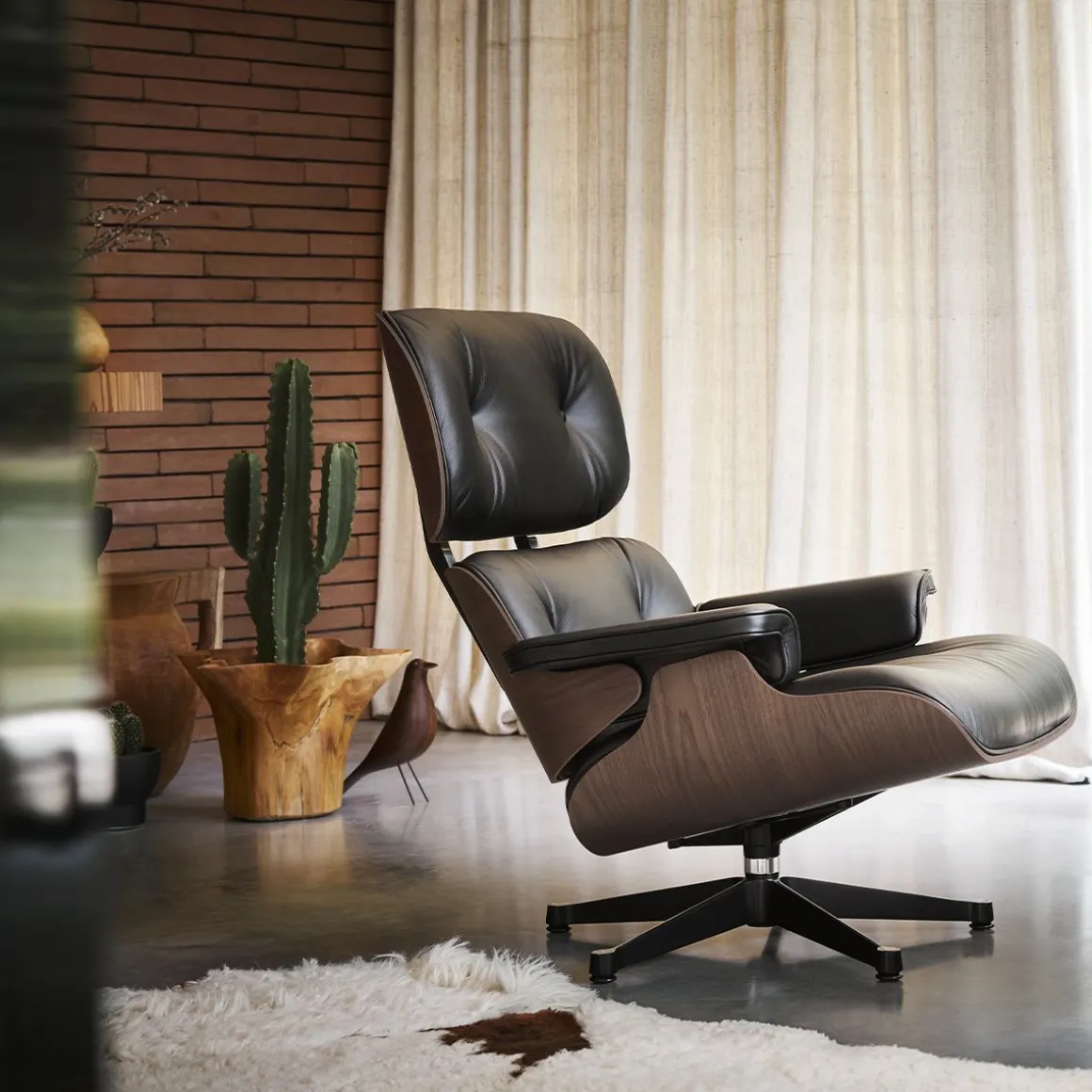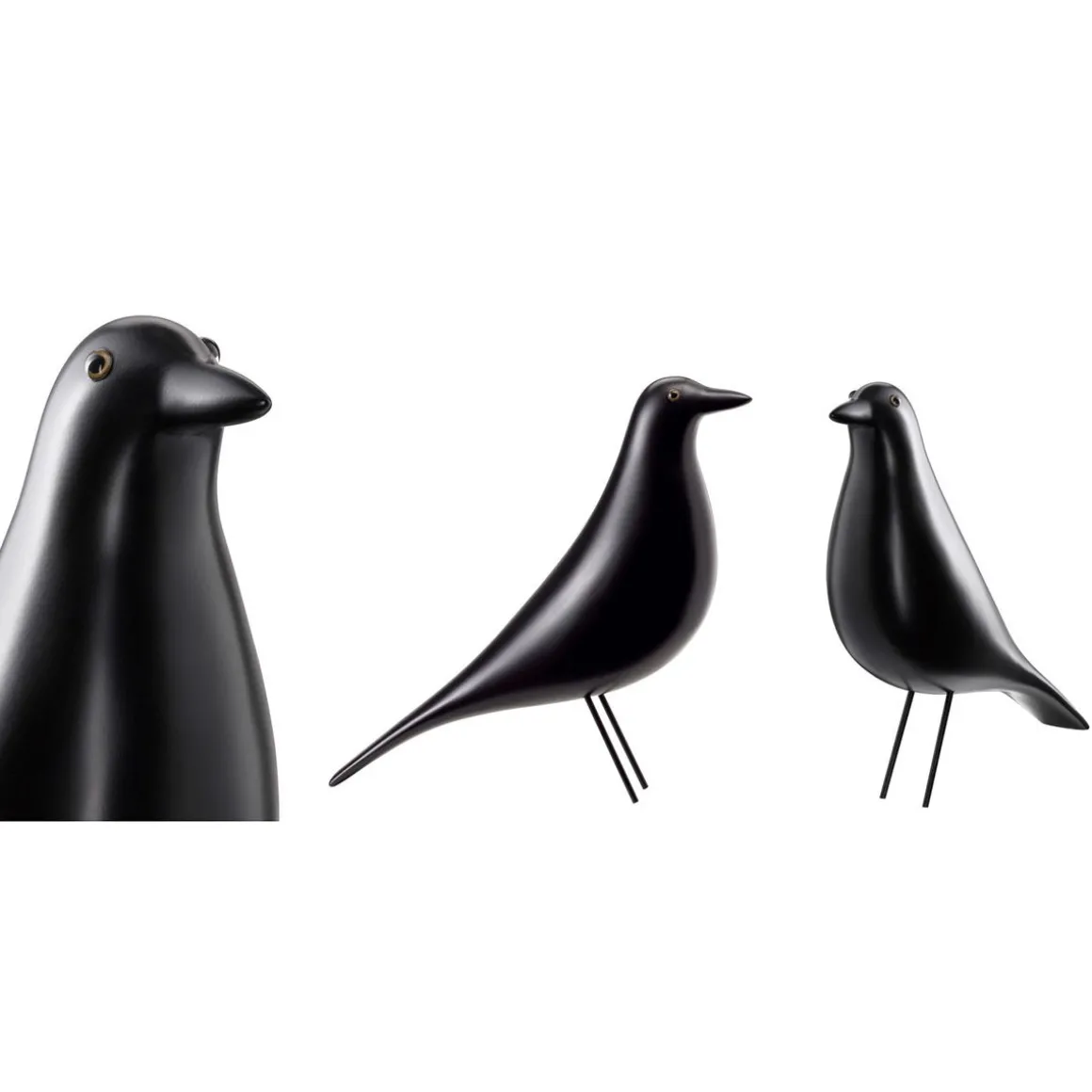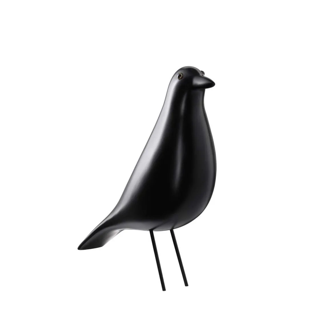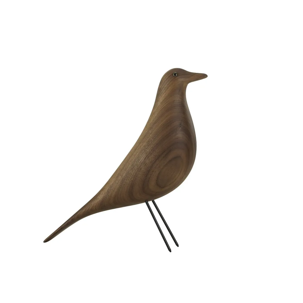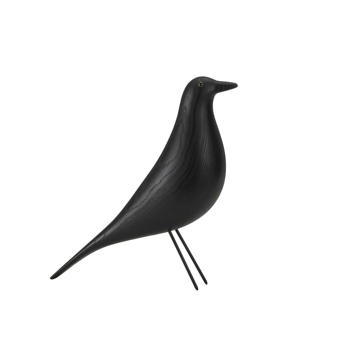 Charles et Ray Eames étoffaient l’aménagement intérieur de leur maison privée, l’Eames House , conçu à la manière d’un collage, par les nombreux objets et accessoires qu’ils rapportaient de leur voyages. Pendant plus de cinquante ans, la figure d’une oiseau en bois occupait le centre du salon – un artefact d’art populaire américain que le couple chérissait de toute évidence, car il apparaissait souvent comme accessoire dans des photographies prises par Charles et Ray. Le Eames House Bird est disponible en frêne avec finition laquée noire ou blanche, ainsi qu’en noyer. Toutes les versions sont fabriquées de manière à mettre en valeur le grain naturel du bois, ce qui souligne le charme vivant de la figurine.