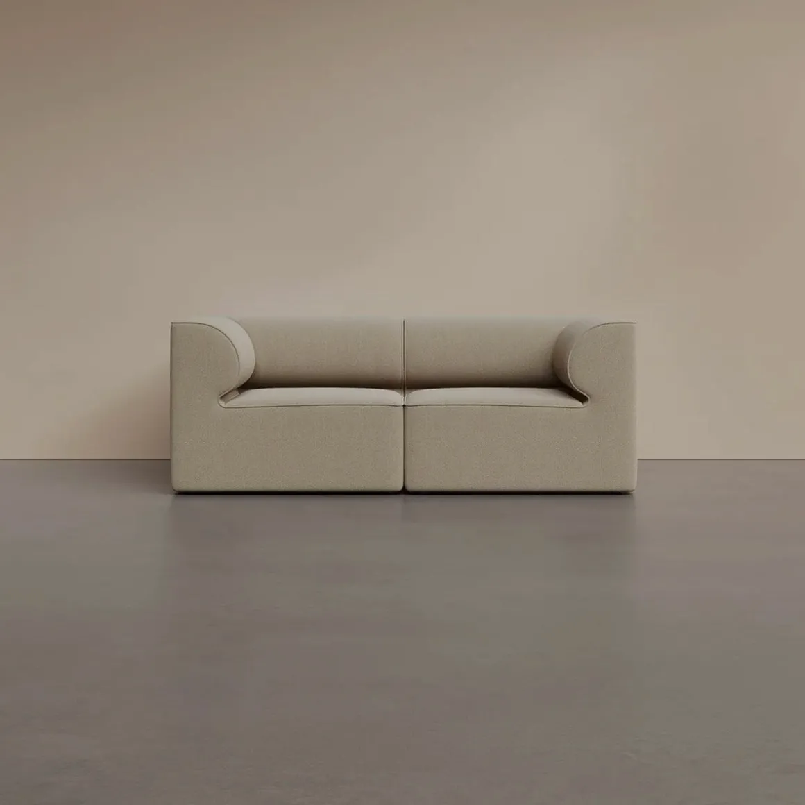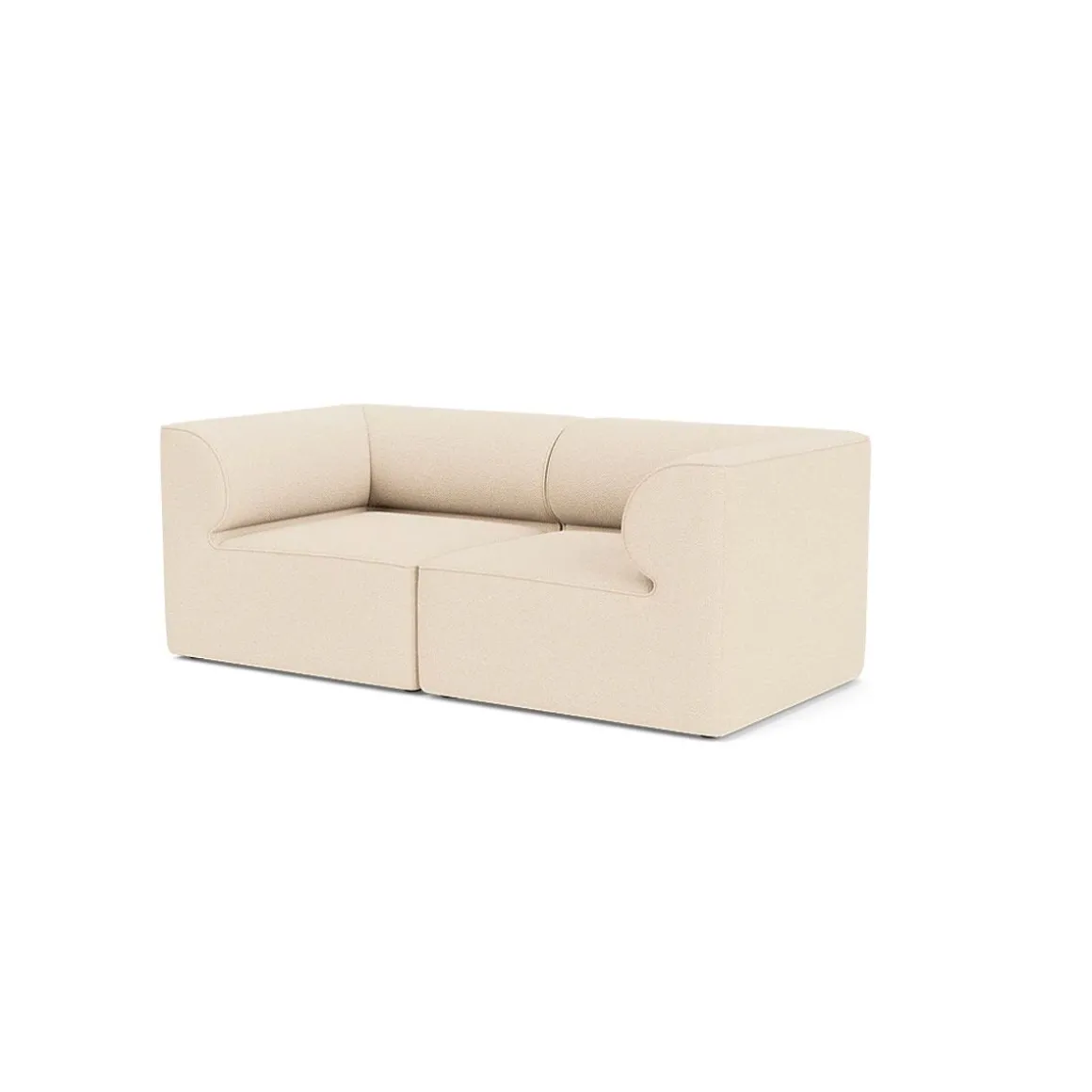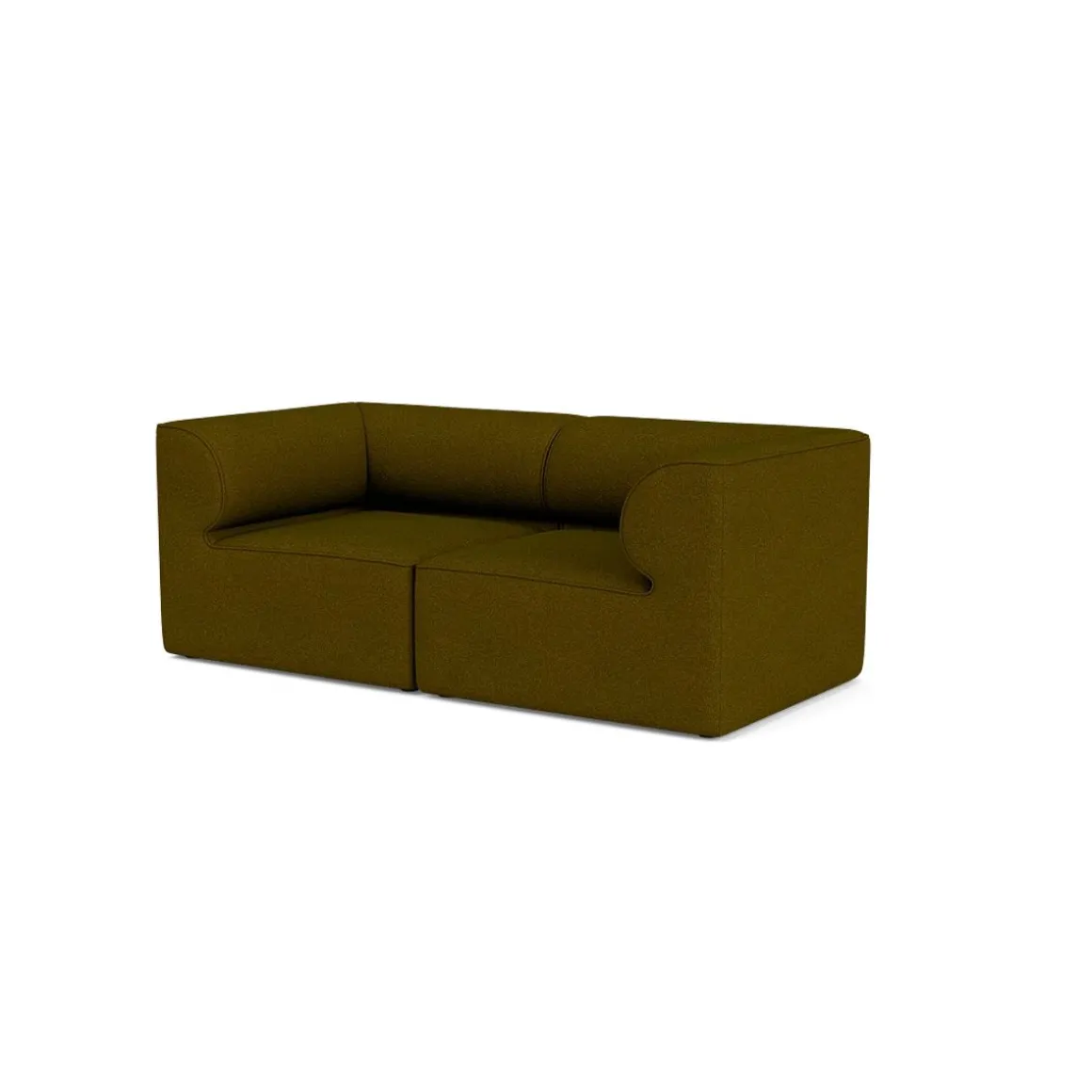 Eave Seamline de Audo par Norm Architects. Inspiré par l’architecture, le canapé modulaire Eave doit son nom aux « avant-toits » – les bords inférieurs du toit qui surplombent un mur. Le détail distinctif du canapé est son « avant-toit » interne – des accoudoirs rembourrés incurvés qui confèrent au canapé son caractère expressif. Idéal pour les pièces où l’espace est limité, ce canapé modulable deux places comprend deux modules fermés qui offrent le confort cocooning qui est devenu synonyme de la collection Eave.