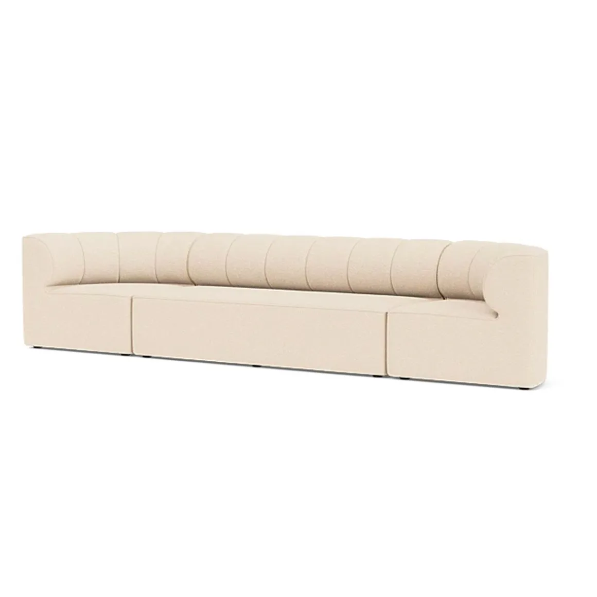 Eave Seamline de Audo par Norm Architects. Trois modules forment un seul canapé sur ce canapé sectionnel quatre places, préconfiguré pour plus de facilité et proportionné pour s’adapter à une grande variété d’espaces de vie et de détente. Les lignes épurées et l’aspect neutre de la série Eave Seamline lui permettent de s’intégrer dans n’importe quel environnement, tandis que les détails de couture caractéristiques ajoutent une touche de personnalité. Le dossier arrondi est parfaitement proportionné pour le soutien et le confort en position assise ou allongée.
