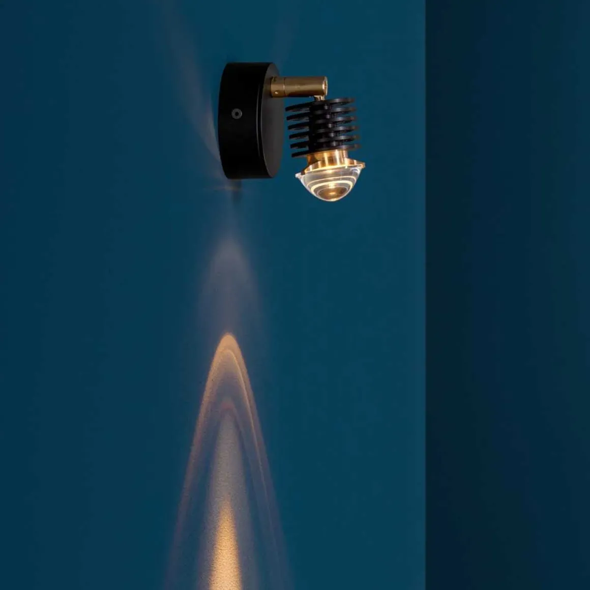 L’applique EC 301 de Catellani & Smith se compose d’une base et d’une structure de couleur noire avec des éléments laiton. La source lumineuse à LED logée à l’intérieur d’une lentille dessine différentes formes de lumière, en fonction de l’orientation obtenue grâce à l’articulation de raccord avec la base.