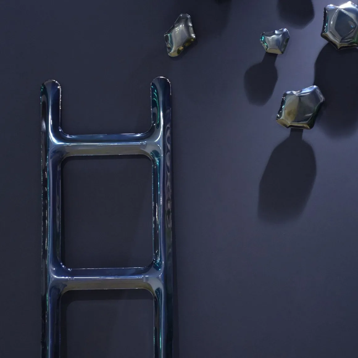 Multiplication d’une simple lettre « H » en forme de 90 degrés gonflée en FIDU- conçue comme un cintre de chambre pour robes de chambre et serviettes.