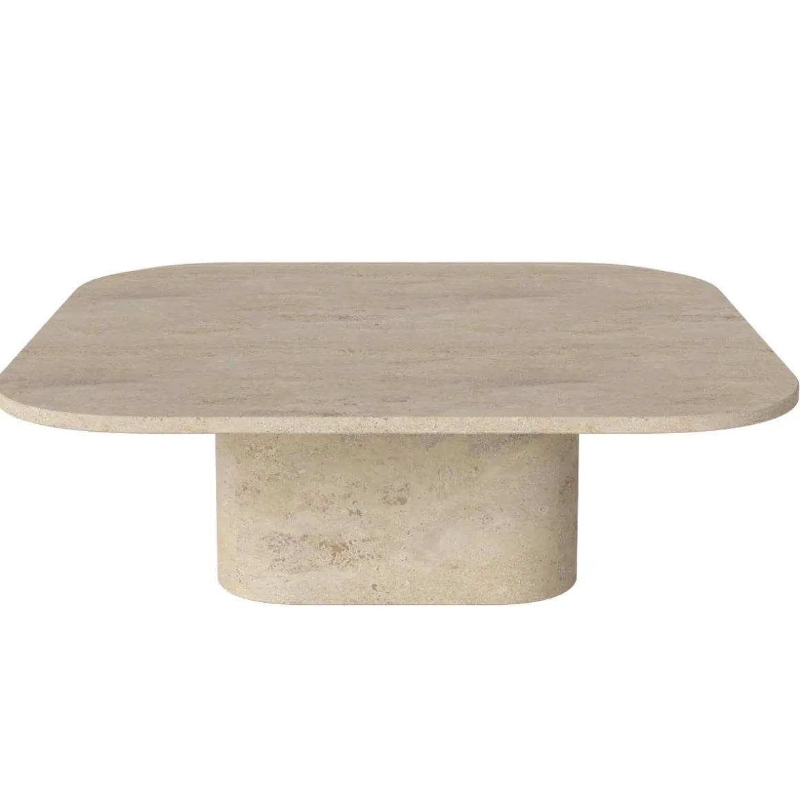 Eida de Bolia par Martin Lauritsen. Les tables basses Eida associent des formes simples et sculpturales à des motifs saisissants en travertin naturel, pour une expression à la fois vivante et sereine. Chaque table est unique.