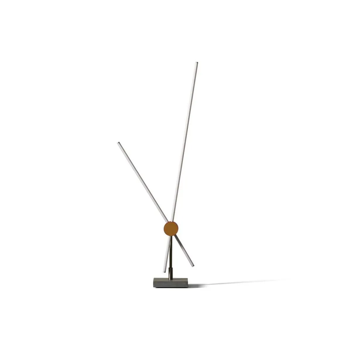 La lampe est composée de deux lignes lumineuses qui peuvent être combinées dans différentes compositions grâce aux connexions en métal noir de forme circulaire, agrémentées de détails en argent, qui recèlent une technologie de pointe. Les articulations peuvent être ouvertes à 30 degrés, vers la gauche ou vers la droite, pour créer différents effets. Chaque ligne lumineuse peut être tournée à 360 degrés pour régler la position et l’intensité de la lampe.