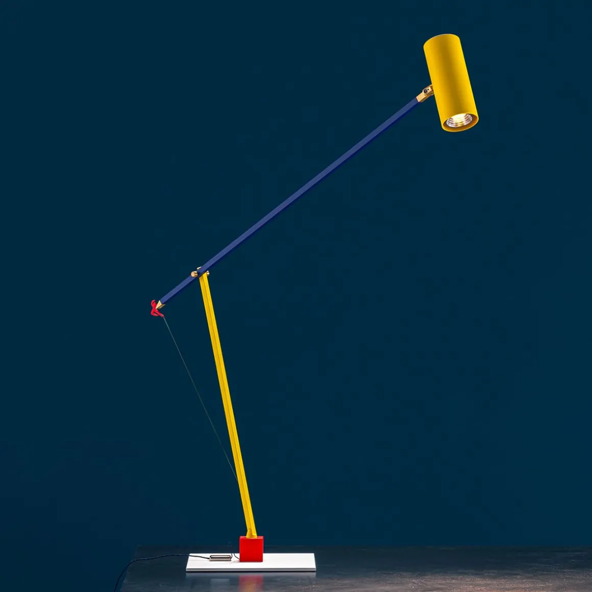 “C’est en 2004 que la couleur fit sa première apparition dans notre catalogue. La collection s’appelait Postkrisi. La couleur, symbole de renaissance, de joie. Aujourd’hui, cette couleur retrouve sa place. » Également disponibles dans les finitions classiques noire et blanche, les lampes Ettorino jouent dans la version « colourful » avec l’élégante combinaison de couleurs primaires, mêlant bleu, jaune et rouge. Précédées par le développement d’un système cinématique innovant et breveté, ces nouvelles lampes articulées se caractérisent par un design essentiel, personnalisé par des détails inattendus. La présence d’une silhouette rouge, détail fonctionnel à la forme dansante, caractérise toutes les lampes. Ettorino T est conçue comme une lampe de bureau, pour fournir un éclairage approprié sur le plan de travail, grâce à la possibilité de mouvement et de rotation de la lampe.
