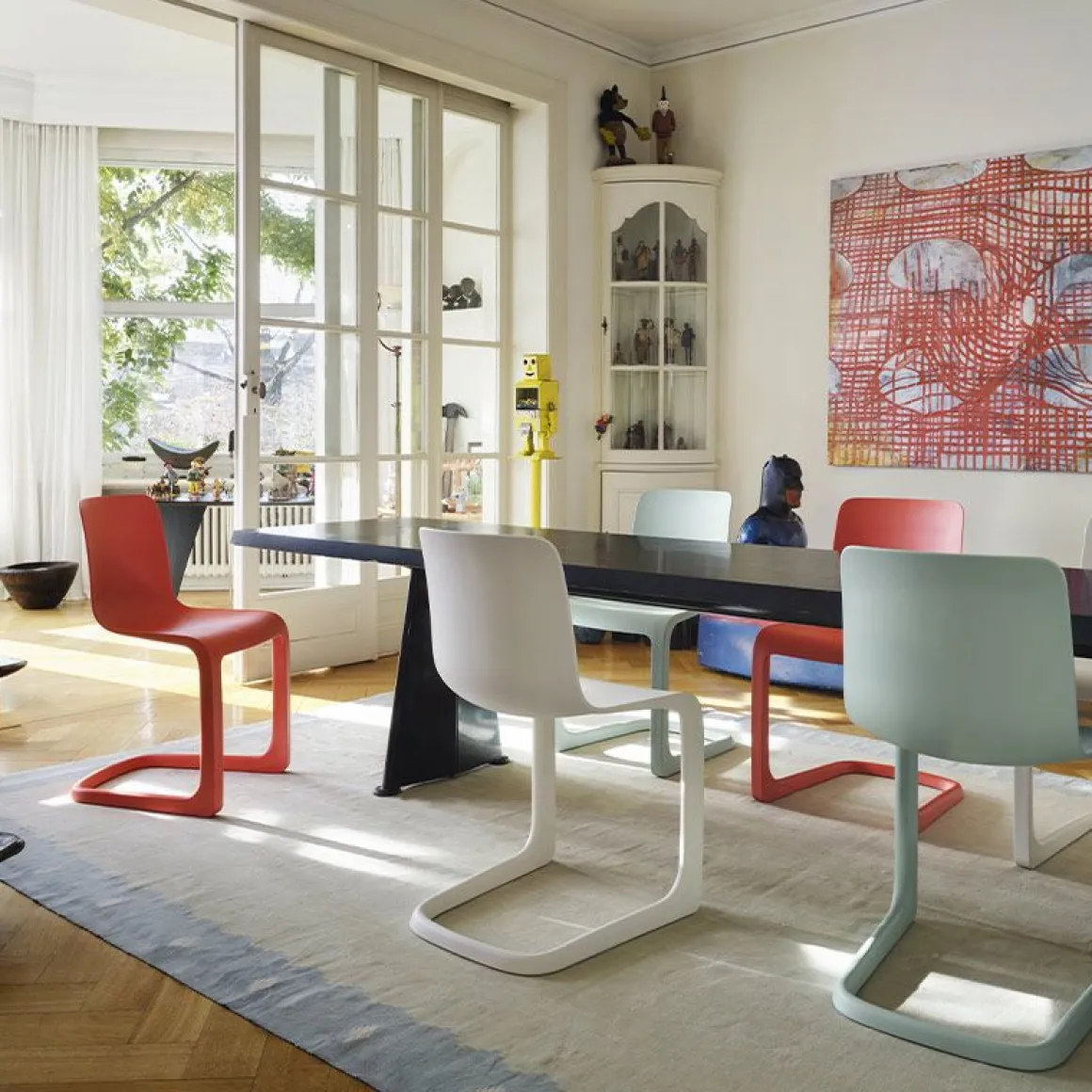 Vitra et Jasper Morrison ont réussi à transposer le principe de base et le confort distinctif de la chaise à porte-à-faux classique dans un modèle ergonomique fabriqué en polypropylène 100% recyclable : EVO-C