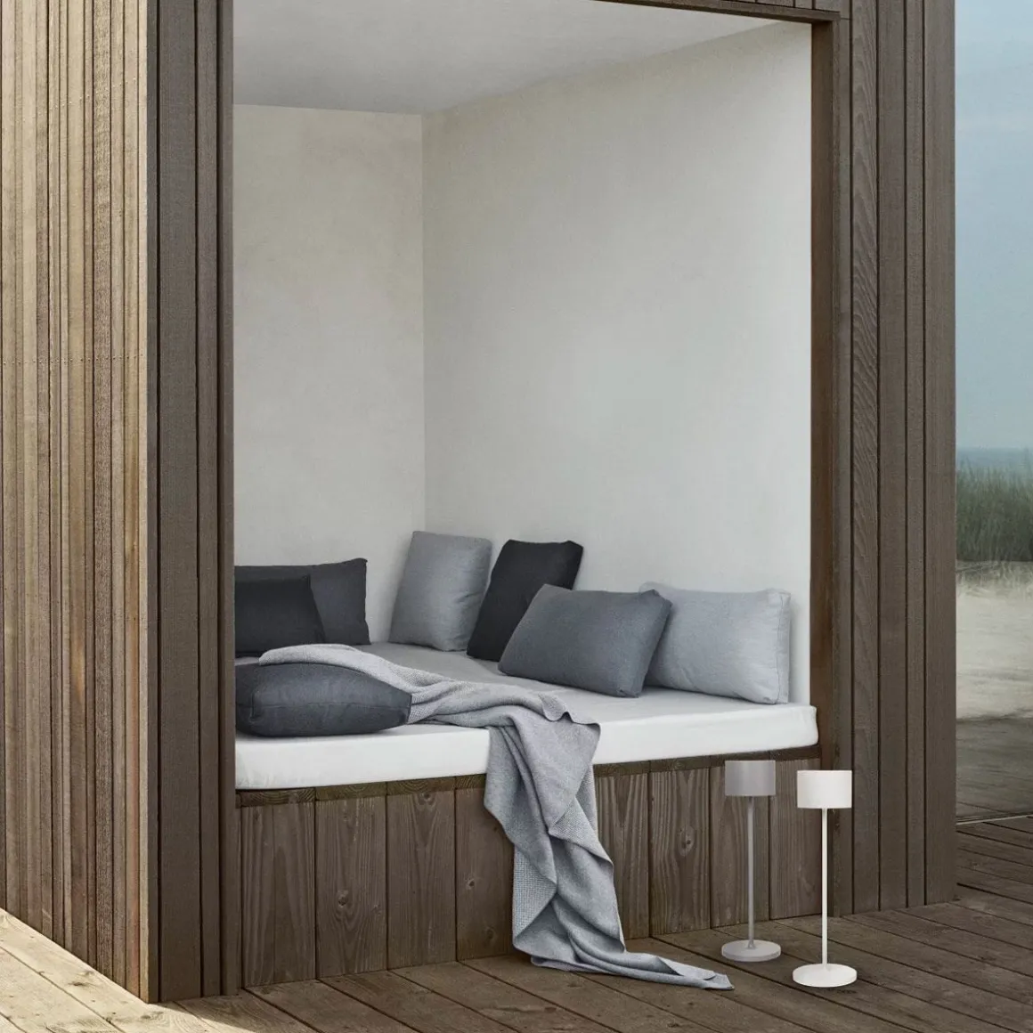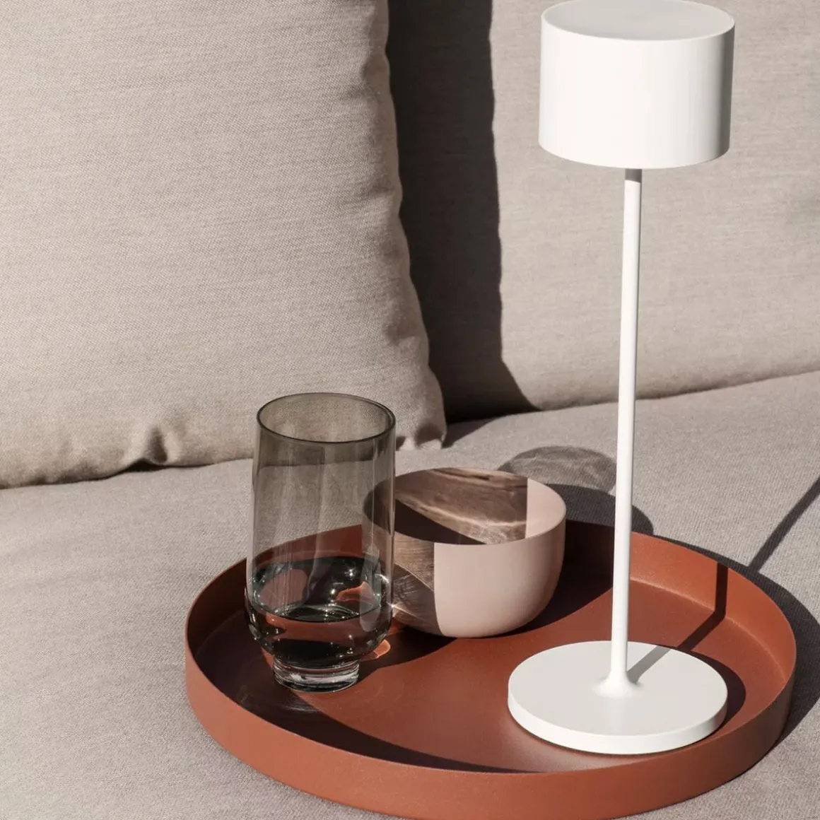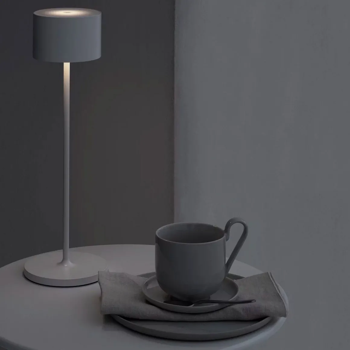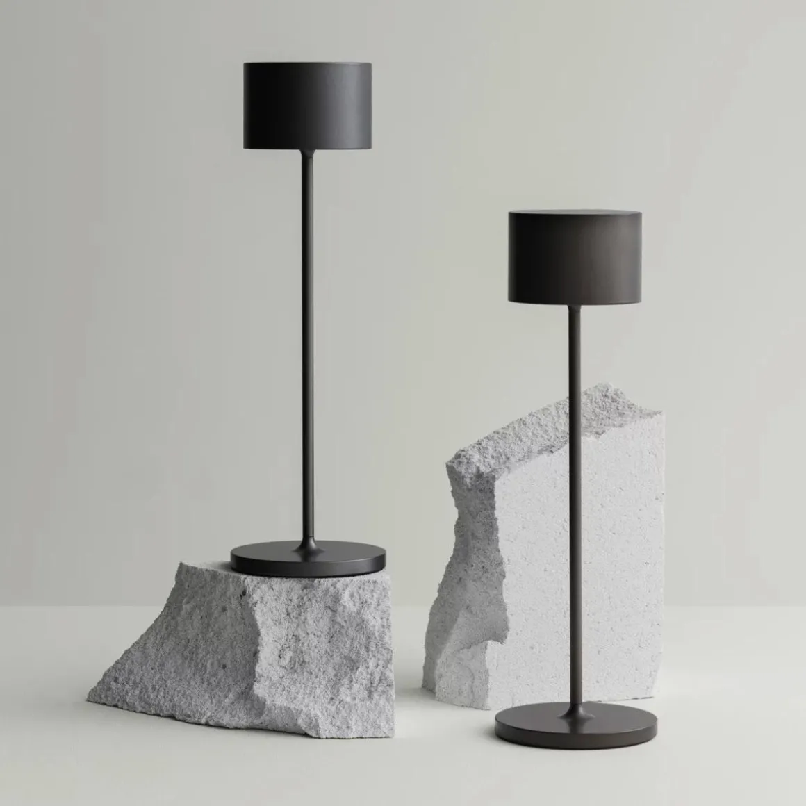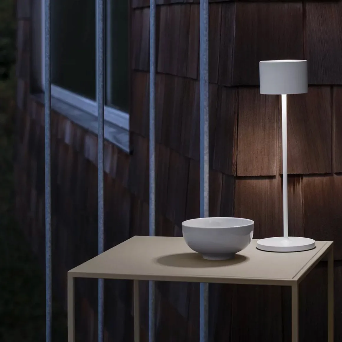Farol de Blomus par Pierre Lienhart. Un effet puissant à l’intérieur comme à l’extérieur : la lampe LED mobile FAROL est élégante et crée une ambiance lumineuse romantique dans n’importe quel endroit. La batterie intégrée offre une grande flexibilité et permet d’utiliser la lampe aussi bien à l’intérieur qu’à l’extérieur, même en cas de forte pluie. La lampe s’utilise en touchant brièvement le centre de l’abat-jour. Cela permet de contrôler trois niveaux de luminosité et l’interrupteur marche/arrêt, tandis qu’une fonction de variateur supplémentaire assure un éclairage agréable. La batterie se charge via une simple station de charge. La couleur de la lumière rouge ou verte indique le processus de charge.