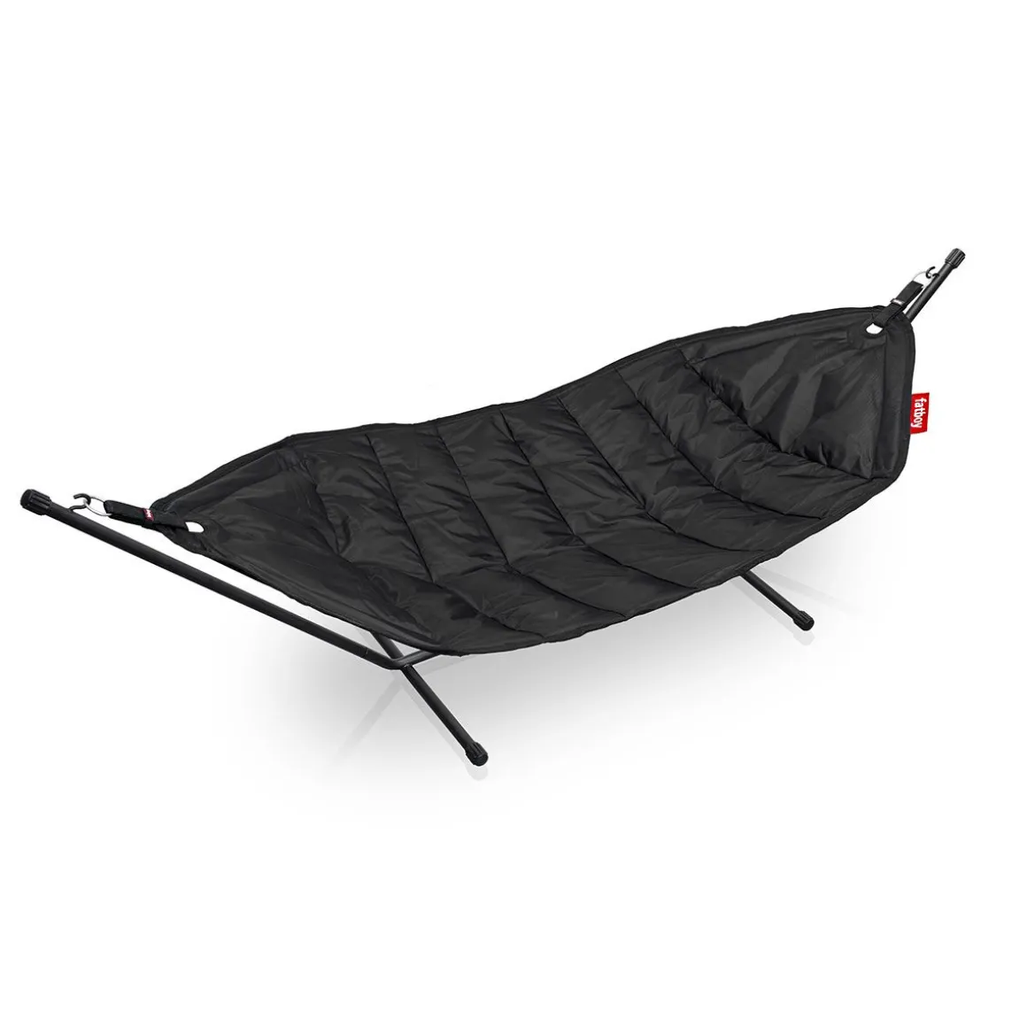 Fort du succès rencontré avec la collection Original et Buggle-Up, Fatboy imagine le compagnon idéal de votre jardin, terrasse ou bord de piscine : le hamac Headdemock. Pour les nostalgiques, vous pouvez également tendre votre hamac entre deux arbres…Voilà une réelle alternative aux hamacs traditionnels pour tous les amateurs de design confortable. Sa grande taille (280 x 140 cm) vous assure tout l’espace nécessaire pour une, deux voir trois personnes. Il offre un confort sans précédent : l’armature intérieure du tissu offre une stabilité supplémentaire au matelas bien rembourré ce qui permet de se relever facilement. Le hamac Headdemock Fatboy est réalisé en polyester renforcé ce qui permet une solidité maximale ainsi qu’un nettoyage simple et pratique, il est imperméable à l’eau et aux saletés. Un simple coup d’éponge suffit à la rendre propre et éclatant. De plus la structure est démontable en fin d’été pour être rangé à la cave ou dans le garage en attendant les beaux jours. Ce hamac, décliné en plusieurs coloris, est une idée originale et tendance pour profiter de vos moments de détente !