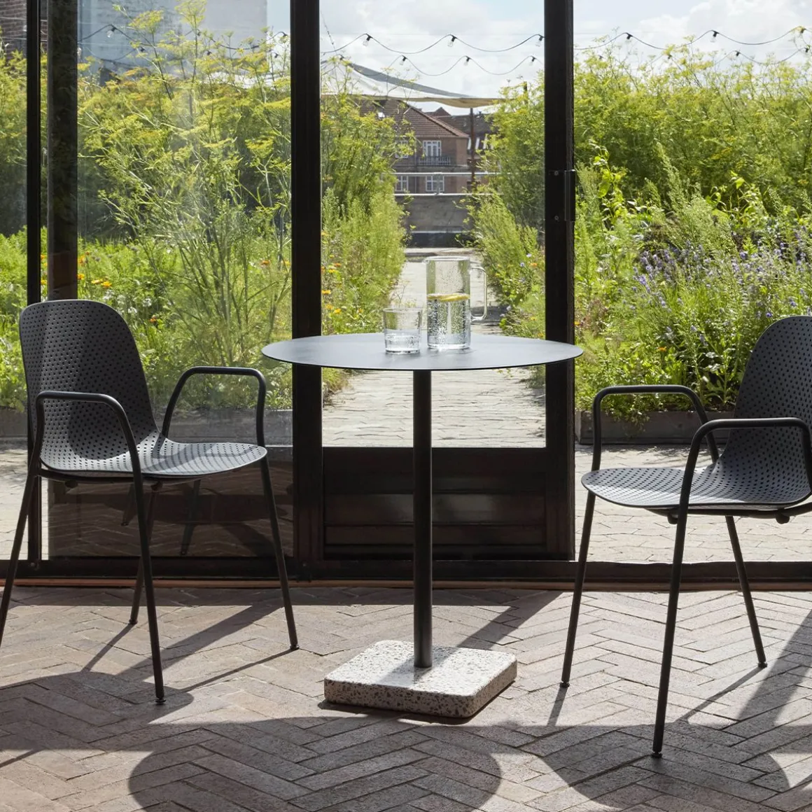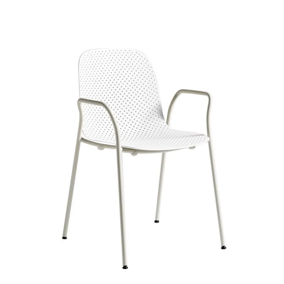 Le fauteuil 13Eighty de HAY conçue par les designers néerlandais Scholten & Baijings porte bien son nom du nombre de trous minuscules dans la coque moulée en polypropylène. Ces perforations créent une esthétique caractéristique, où la transparence et un jeu de lumière et d’ombres s’ajoutent à l’expression de la chaise, tandis que les variations de la taille des trous apportent une sensation de mouvement à l’aspect visuel. Ils ont également une utilisation fonctionnelle dans évacuation de l’eau de pluie lorsque les chaises sont utilisées à l’extérieur.