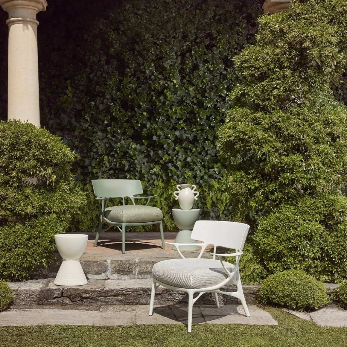 A.I. LOUNGE, le nouveau fauteuil de la famille A.I., conjugue matériaux durables avec confort et motif graphique en veillant aux perspectives et au bien-être dans nos espaces de vie. Un fauteuil de salon où les lignes, trait distinctif de la collection, s’unissent à une assise totalement confortable. Disponible en blanc, noir,, orange et gris et dans une version avec ou sans coussin pour l’intérieur et l’extérieur.