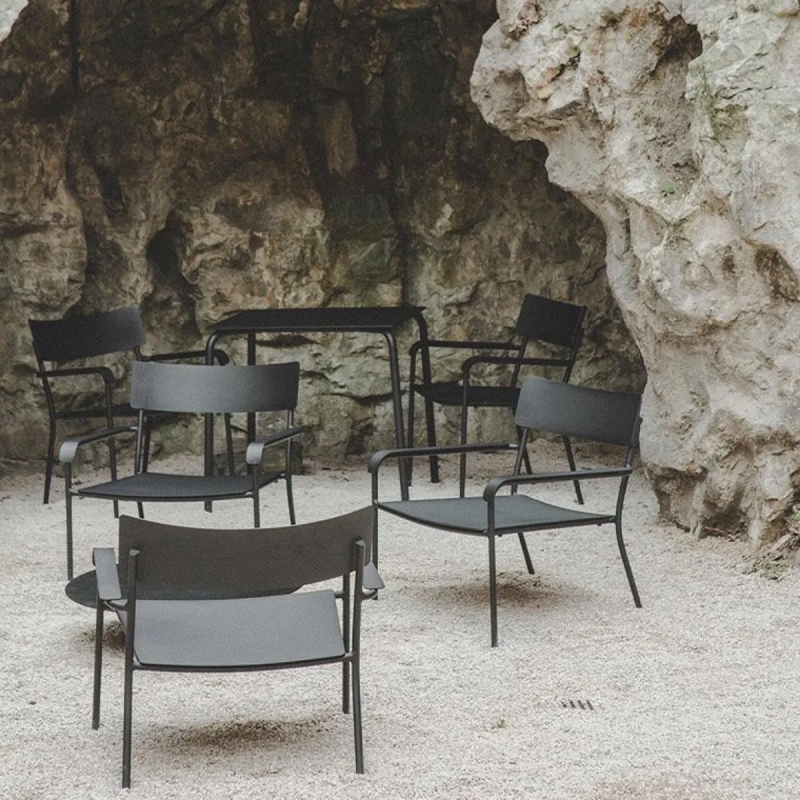 Vincent Van Duysen est réputé pour sa façon très singulière de marier confort et minimalisme dépouillé. Les accoudoirs du fauteuil lounge sont dotés de supports complémentaires imaginés par l’architecte d’intérieur, tandis que l’assise et le dossier légèrement courbés offrent plus de soutien. Les fauteuils résistants aux intempéries sont fabriqués en aluminium thermolaqué noir, gris ou vert et peuvent s’utiliser à l’intérieur comme à l’extérieur, pour un agréable moment de détente.