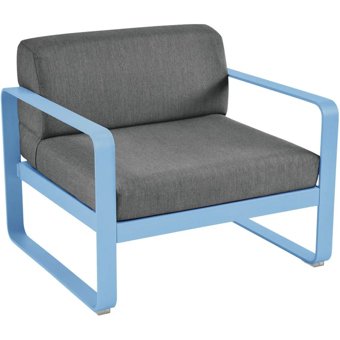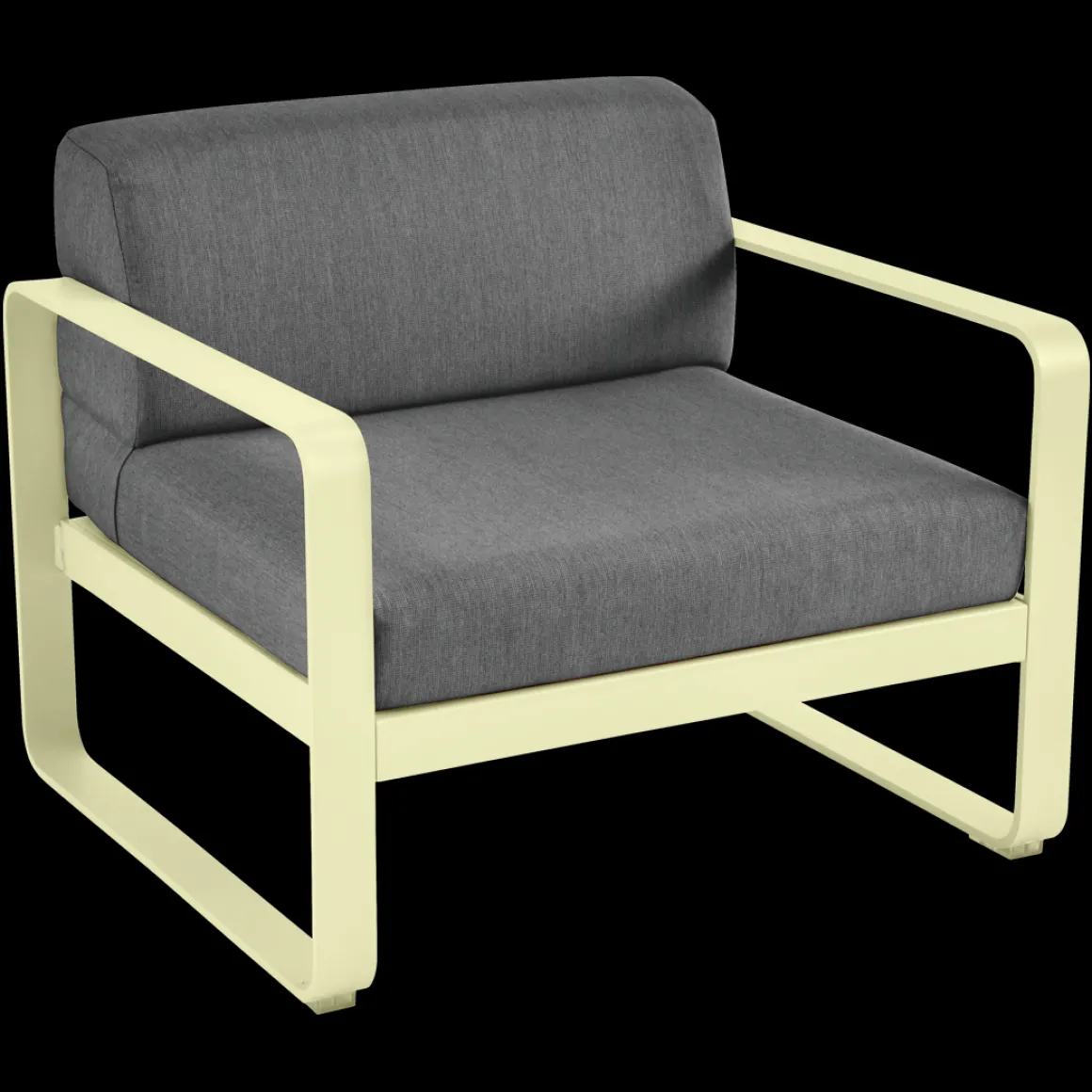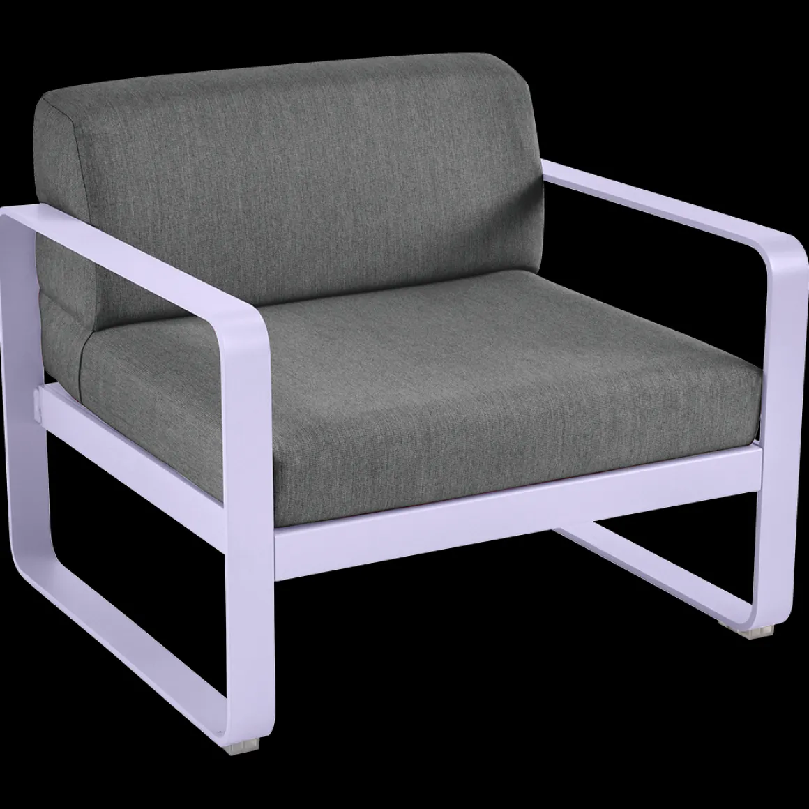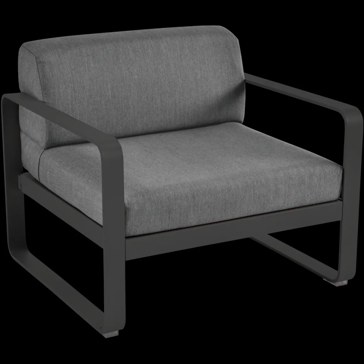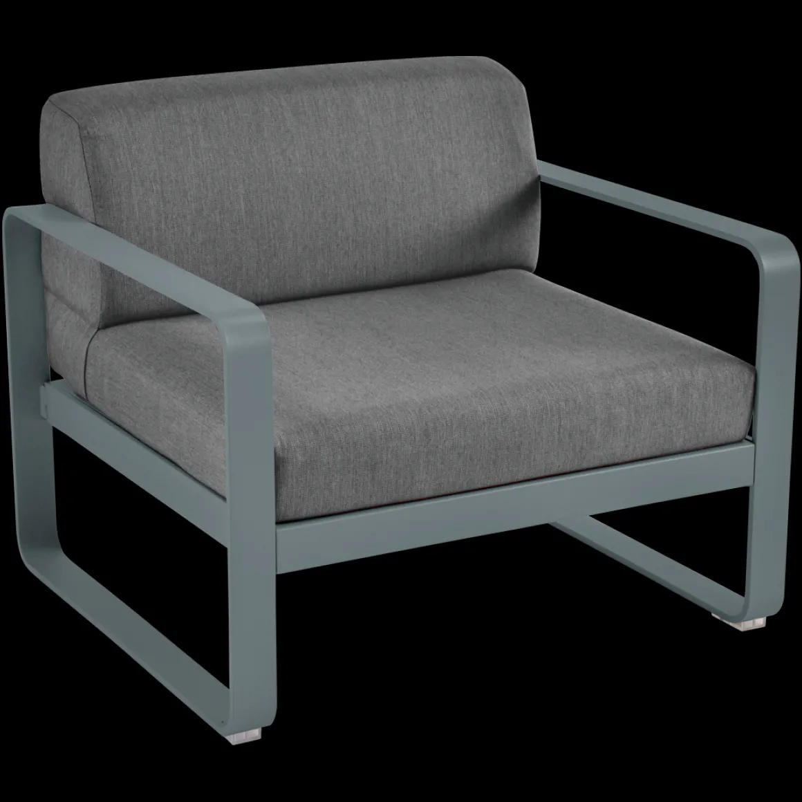 Fauteuil Bellevie – Gris graphite de Fermob. Les formes géométriques et les courbes douces de ce fauteuil de jardin transcendent les styles et les époques. La structure de ce mobilier de jardin en aluminium, disponible dans toutes les couleurs Fermob, lui apporte à la fois solidité, longévité et légèreté… sans oublier un grain d’audace par la couleur!