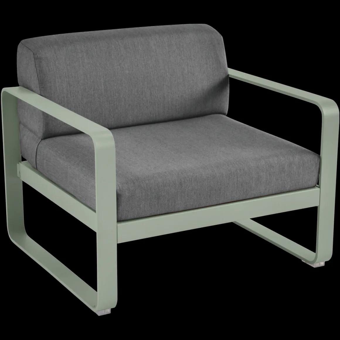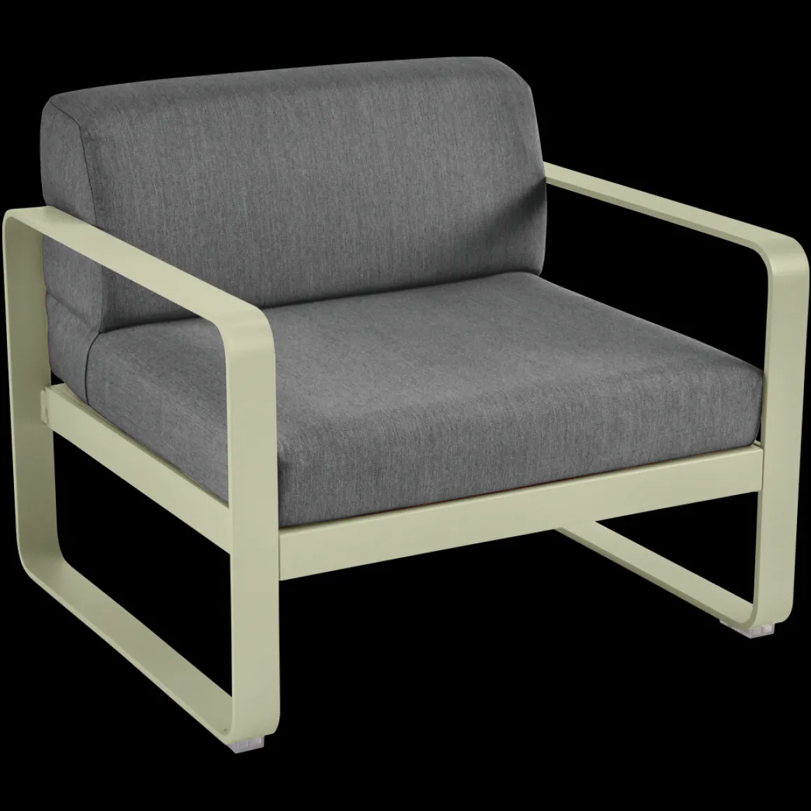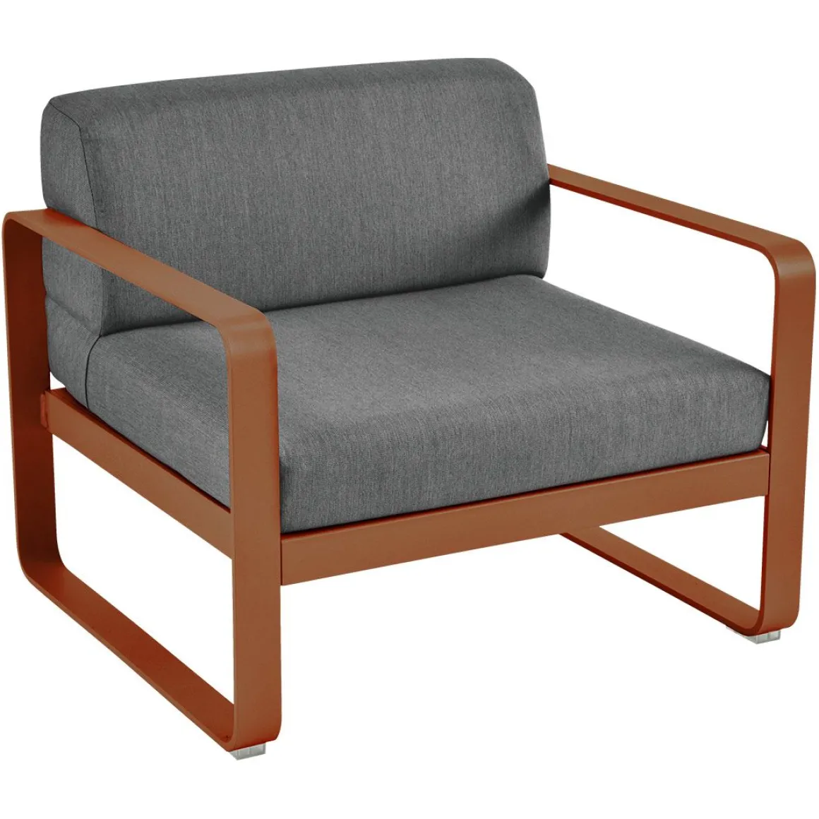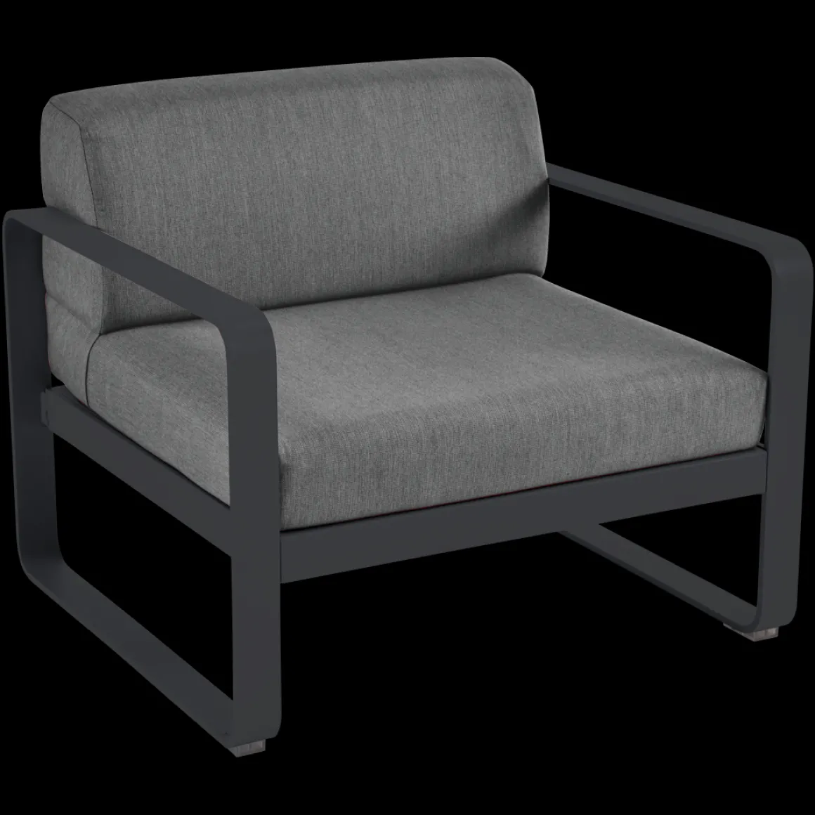Fauteuil Bellevie – Gris graphite de Fermob. Les formes géométriques et les courbes douces de ce fauteuil de jardin transcendent les styles et les époques. La structure de ce mobilier de jardin en aluminium, disponible dans toutes les couleurs Fermob, lui apporte à la fois solidité, longévité et légèreté… sans oublier un grain d’audace par la couleur!