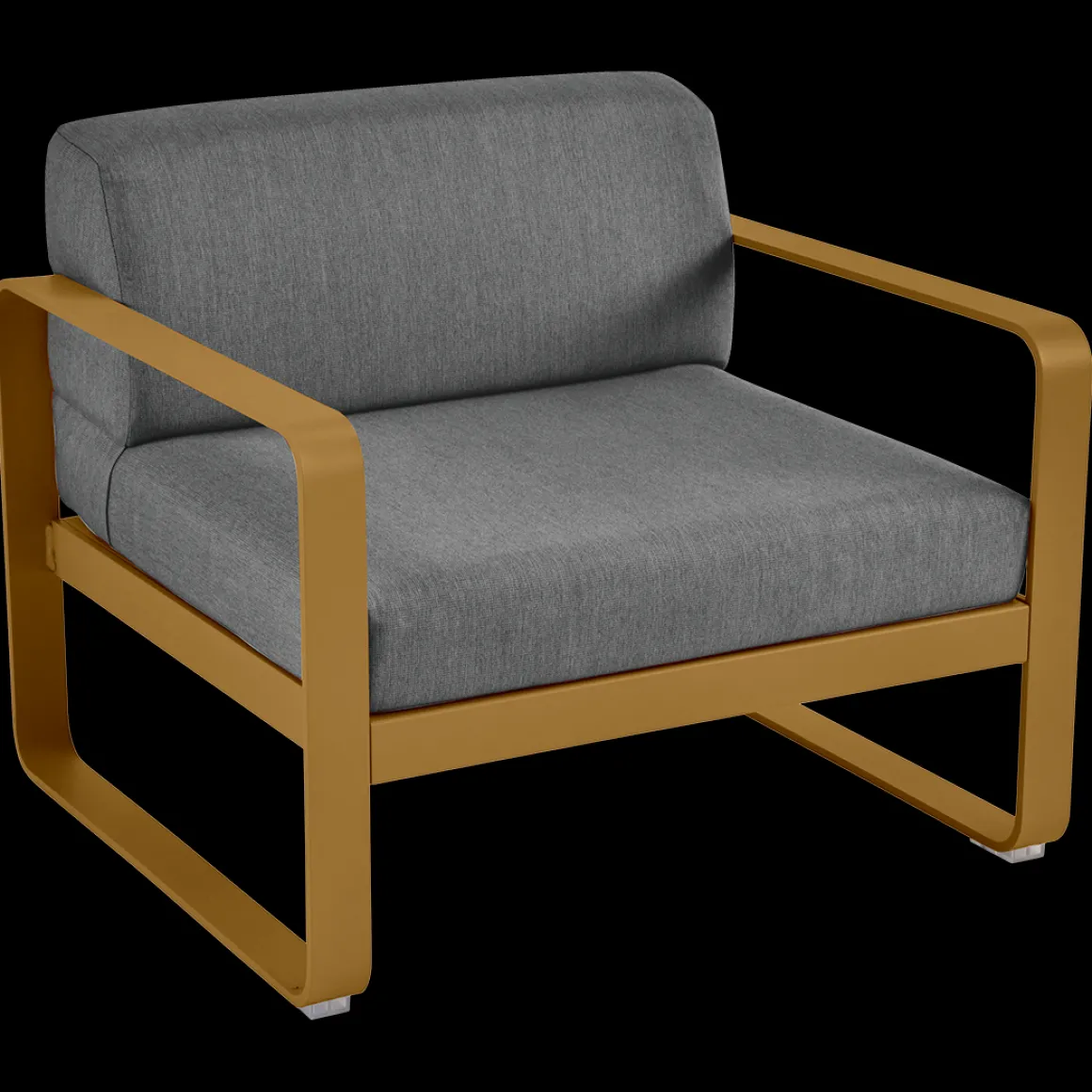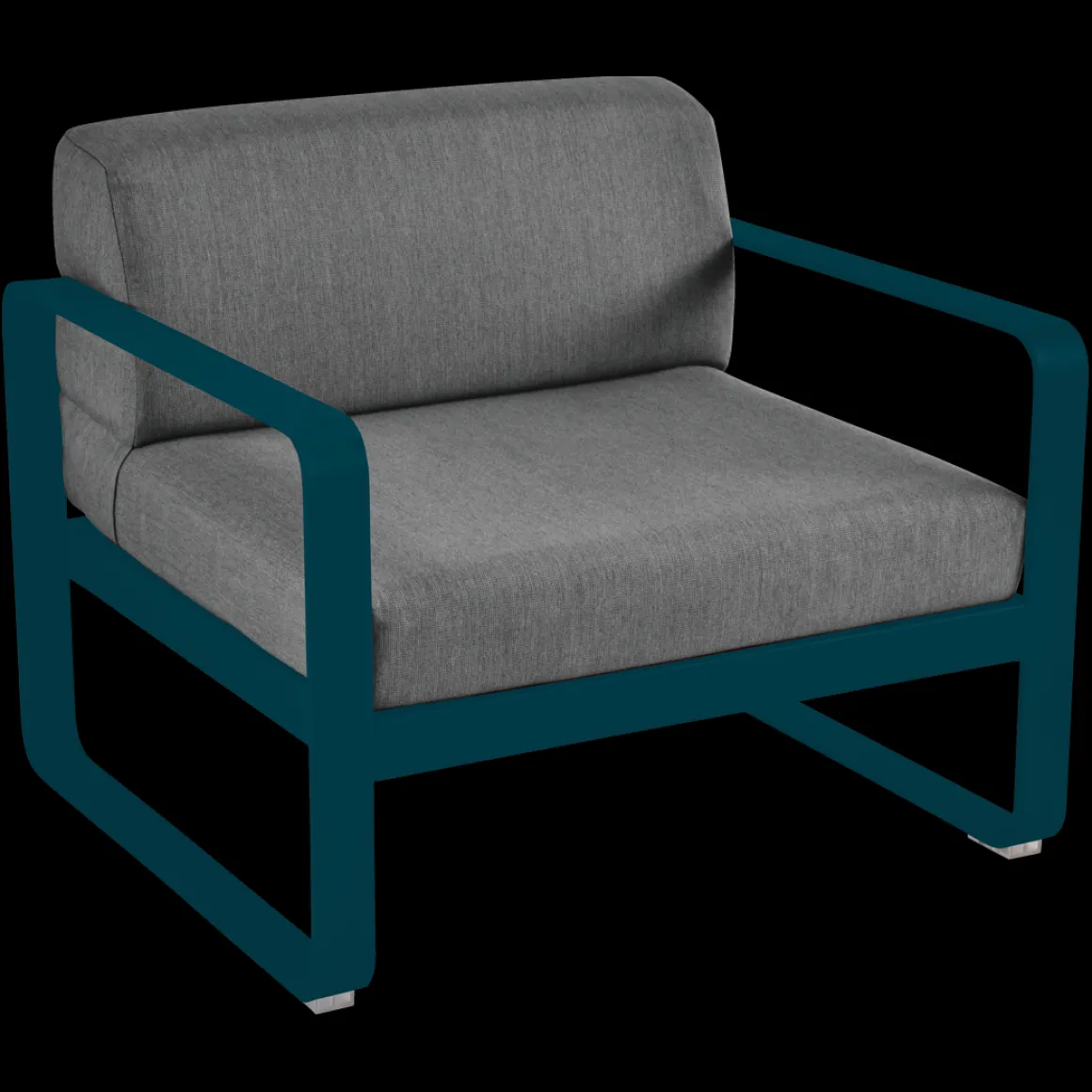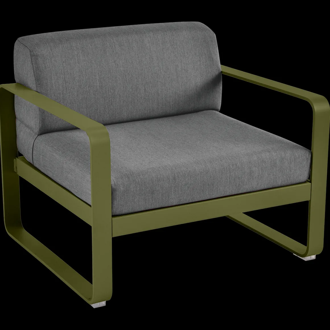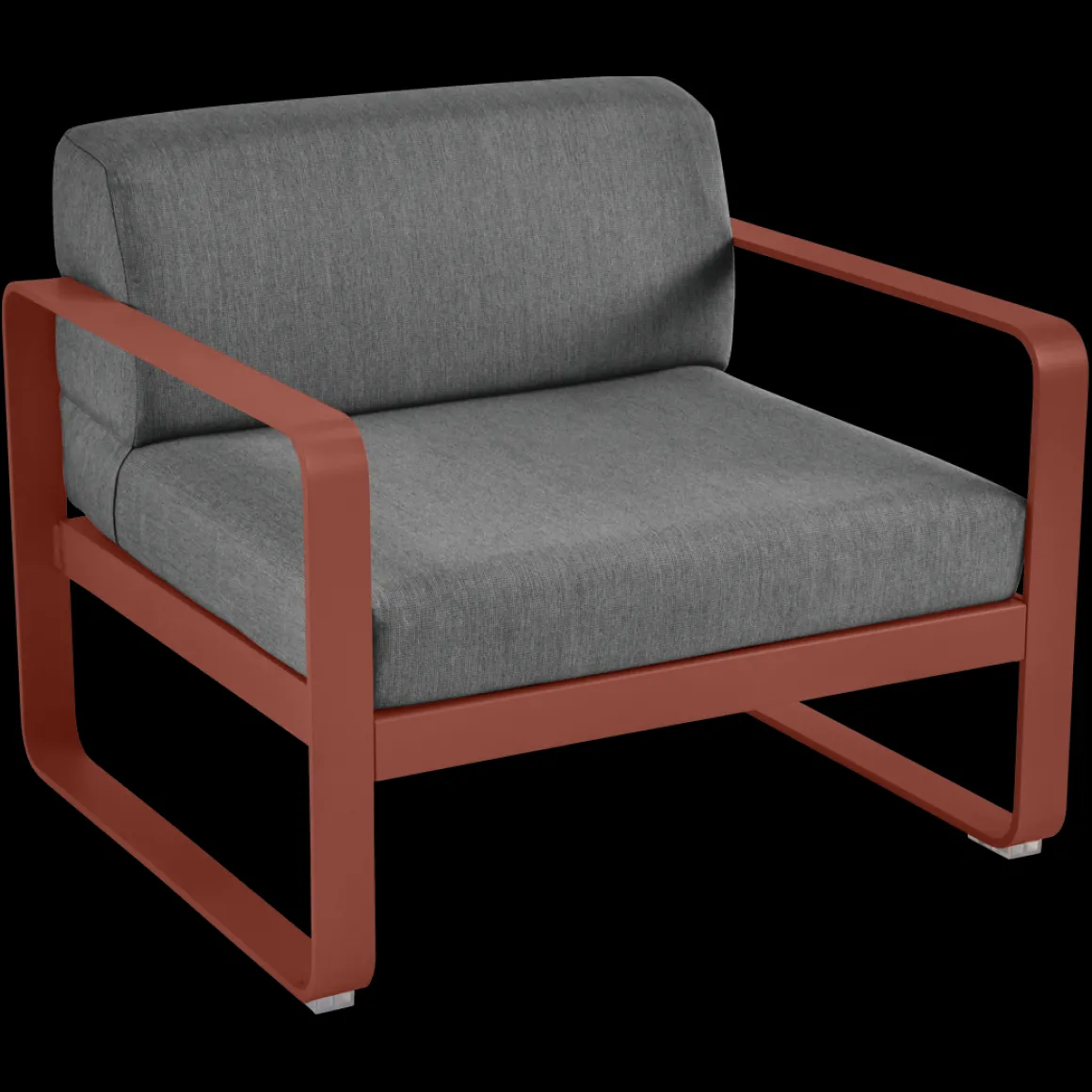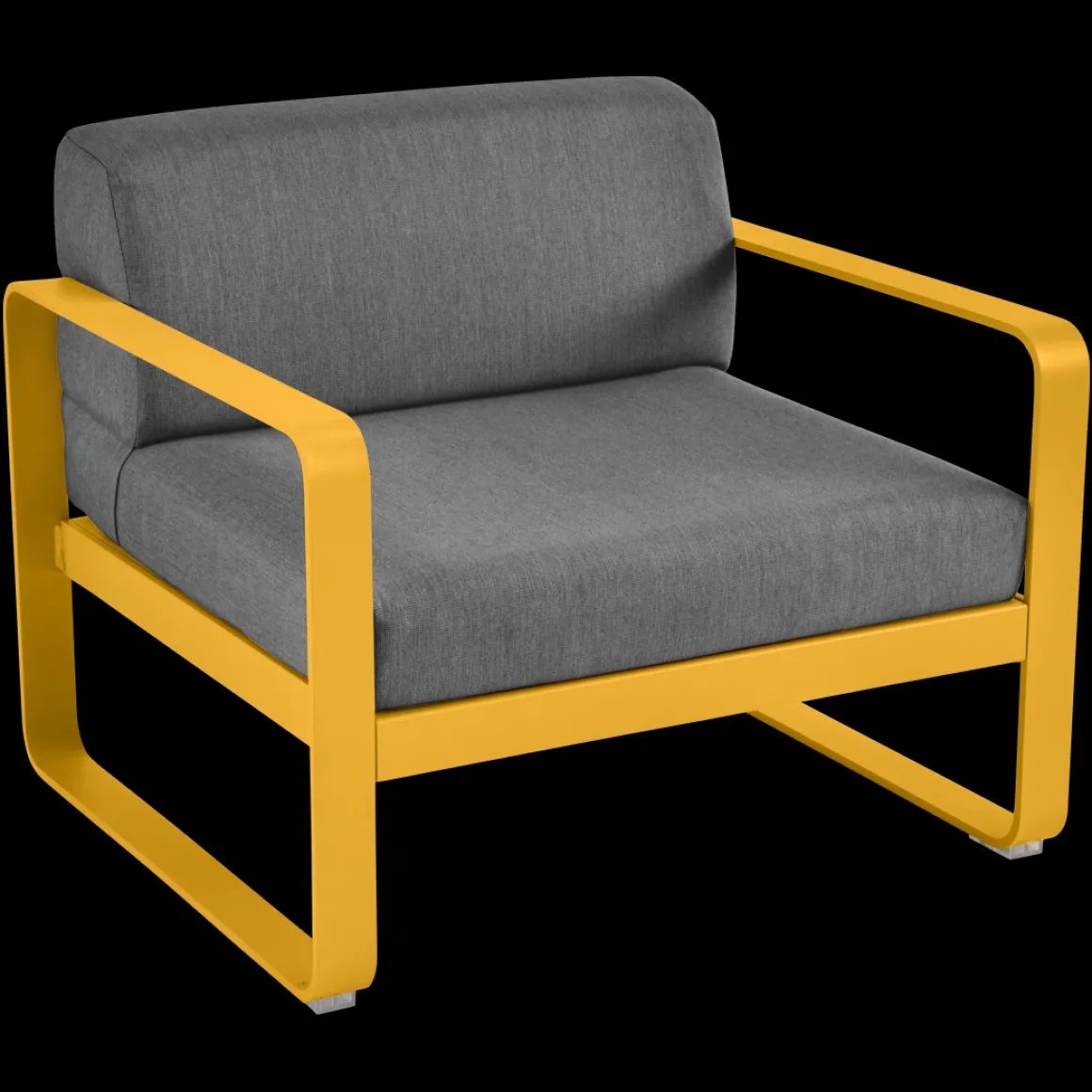 Fauteuil Bellevie – Gris graphite de Fermob. Les formes géométriques et les courbes douces de ce fauteuil de jardin transcendent les styles et les époques. La structure de ce mobilier de jardin en aluminium, disponible dans toutes les couleurs Fermob, lui apporte à la fois solidité, longévité et légèreté… sans oublier un grain d’audace par la couleur!