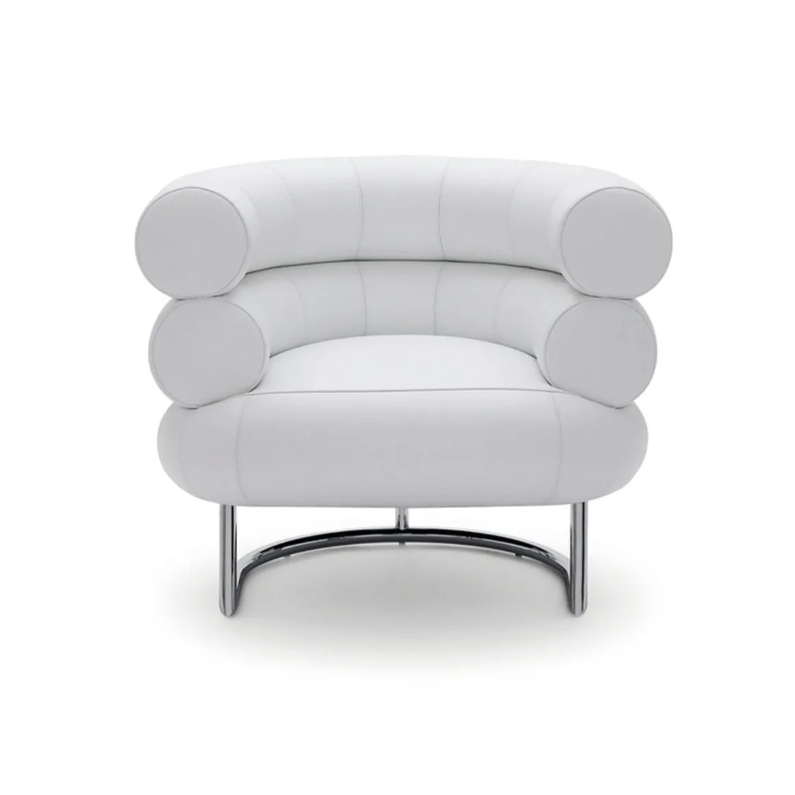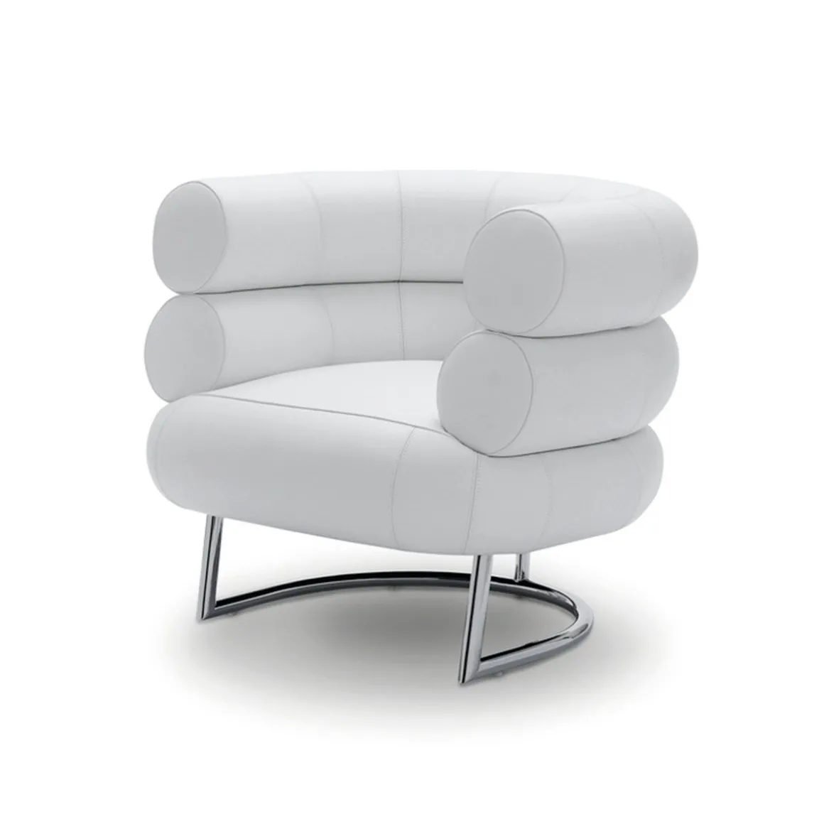 Eileen Gray a souligné le caractère de son adorable lion de salon avec une ironie ironique en le nommant d’après le pneu Michelin dont le fauteuil cite la forme.