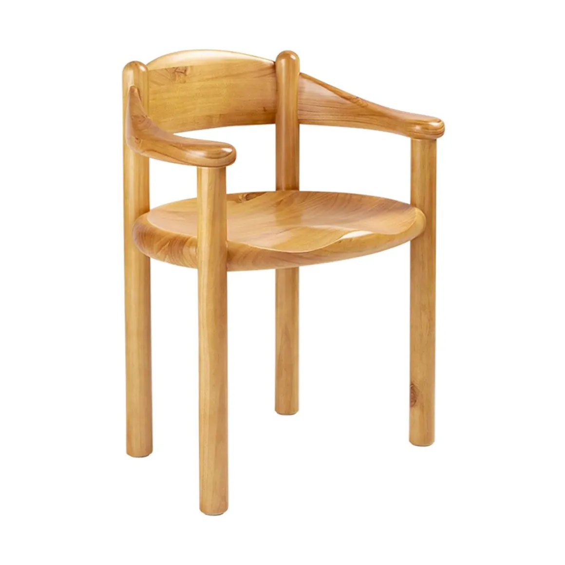 Fauteuil Daumiller de Gubi. De construction solide, de forme simple et d’expression sculpturale, la matérialité simple et la composition robuste du fauteuil Daumiller rendent hommage à l’affinité de Rainer Daumiller avec les matériaux et les formes naturelles. Construit en pin massif durable, tout comme les pièces originales produites par Hirtshals Sawmill en 1977, le siège et le dossier sont ergonomiquement adaptés aux contours du corps, ce qui ne fait qu’ajouter à l’expression audacieuse et rétro de ce classique du design danois.
