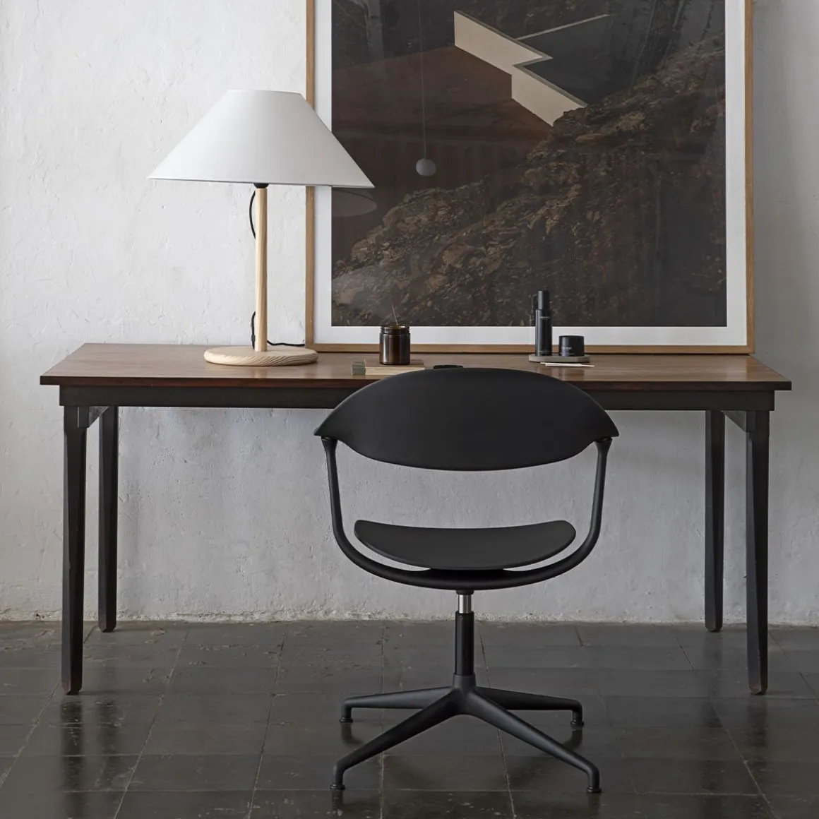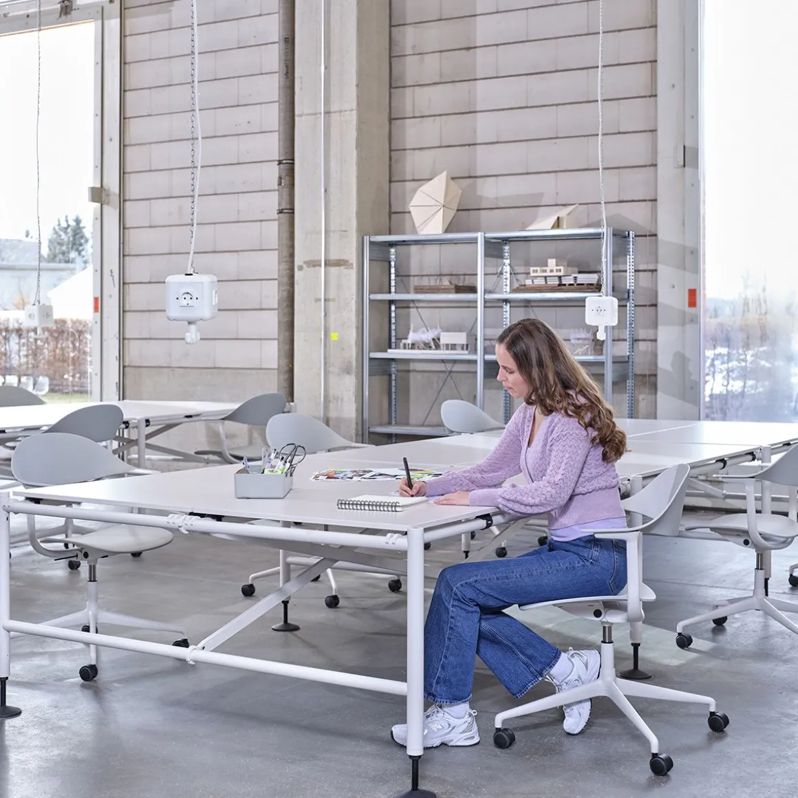 Mynt représente la nouvelle façon de s’asseoir dans les bureau, des espaces publics et des maisons, répondant ainsi au fait que l’on ne s’assoit plus sur une chaise pendant de longue périodes mais plutôt qu’on la partage souvent avec d’autres utilisateurs. Dans les bureau Mynt adopte l’apparence confortable d’une siège universel, tandis que dans une maison, il offre le dynamisme d’une chaise de bureau – défiant ainsi les catégorisations conventionnelles. L‘élément central : son mécanisme breveté qui, activé par le poids du corps, s‘incline vers l‘avant ou vers l‘arrière en fonction des changements de position de l‘utilisateur, l‘assise se déplaçant indépendamment du dossier. La résistance s‘adapte automatiquement au poids de l‘utilisateur qui n’a plus qu’à régler la hauteur d’assise. Le mécanisme élancé fait partie intégrante du design de Mynt et détermine l‘esthétique discrète et acceuillante du siège. L‘assise et le dossier sont disponibles en placage de bois ou en polyamide recyclé provenant à 100 % de sources post-industrielles et peuvent être remplacés ou échangés avec un autre matériau ou une autre couleur. Dans la version avec un piètement à quatre branches, les patins peuvent être remplacés par des roulettes et vice versa ; Mynt répond aux normes de bureau en vigueur dans les deux versions. Des revêtements rembourrés sont disponibles pour l‘assise et le dossier. Grâce à des fermetures à glissière, les deux éléments de rembourrage peuvent être facilement retirés pour être nettoyés ou remplacés. Mynt conserve ainsi son aspect neuf et s‘adapte facilement à de nouveaux besoins.
