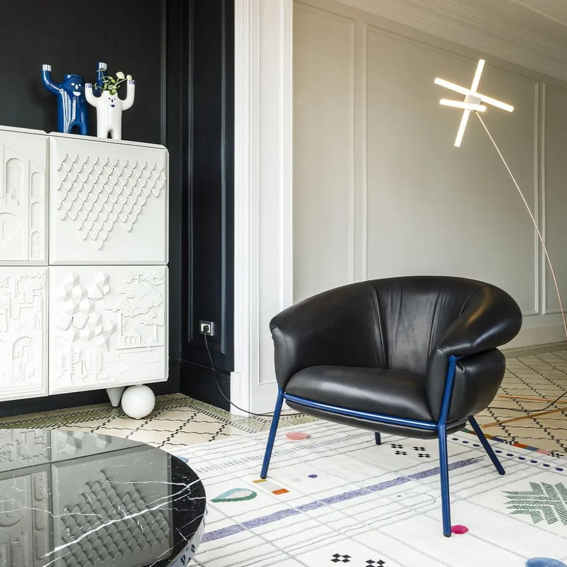 Un fauteuil qui recherche un « ultra-confort » visuel et invite à s’y asseoir. Le revêtement en cuir suinte sur la structure en fer nu pour contraster avec la touche la plus luxueuse de la peau. Disponible en différentes couleurs de structure et de revêtement. Gagnant du prix Interior NYCxDESIGN 2019 dans la catégorie des meilleurs sièges de salon. Lauréat du prix Delta d’or ADI-FAD 2020.