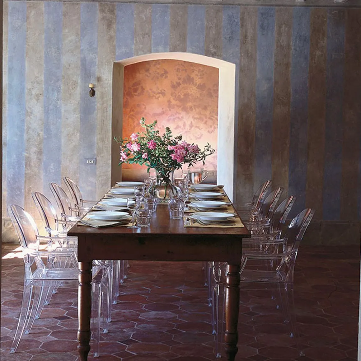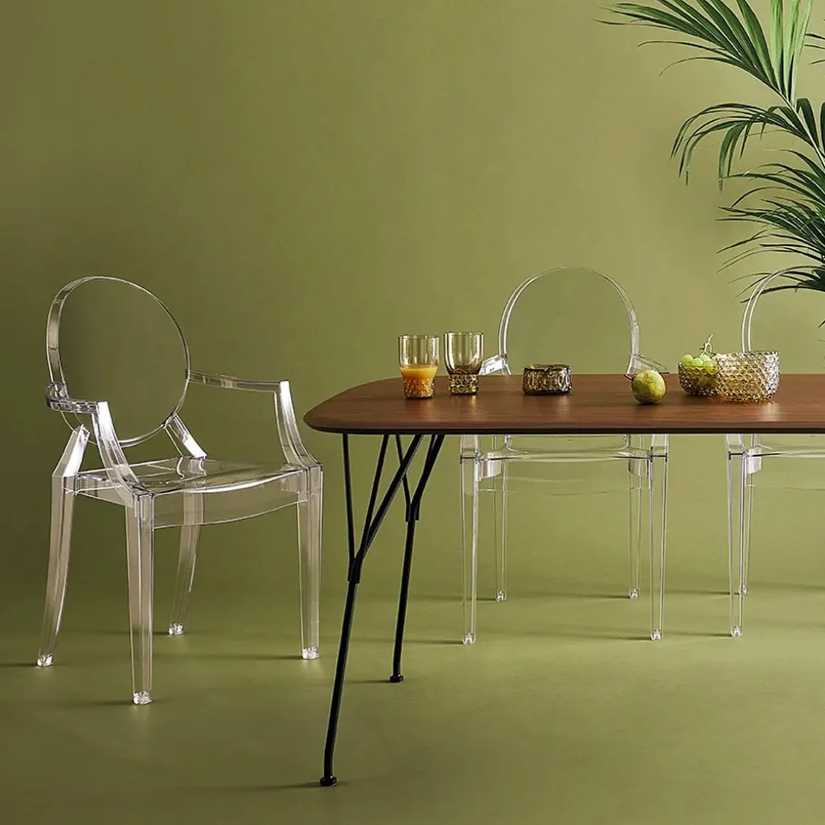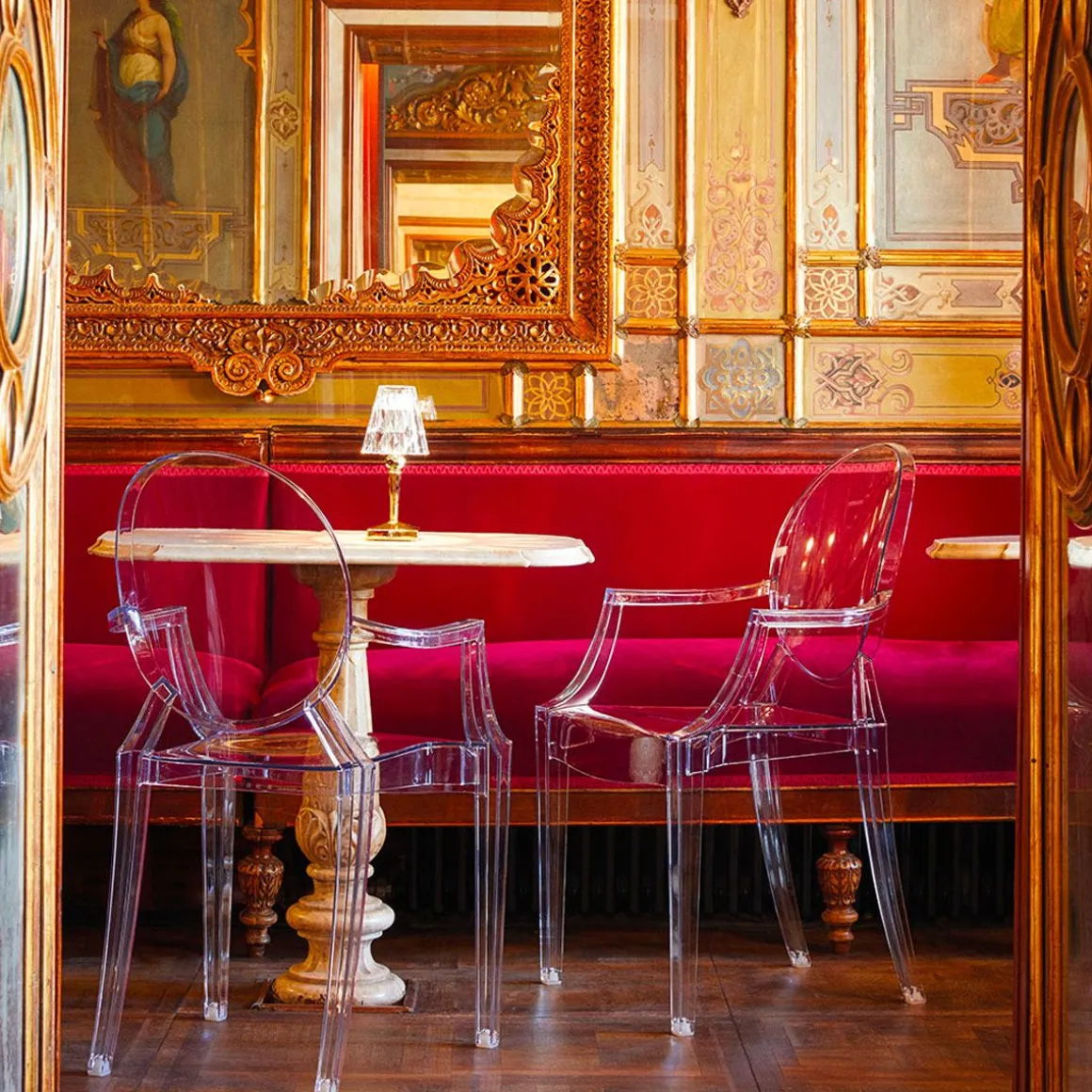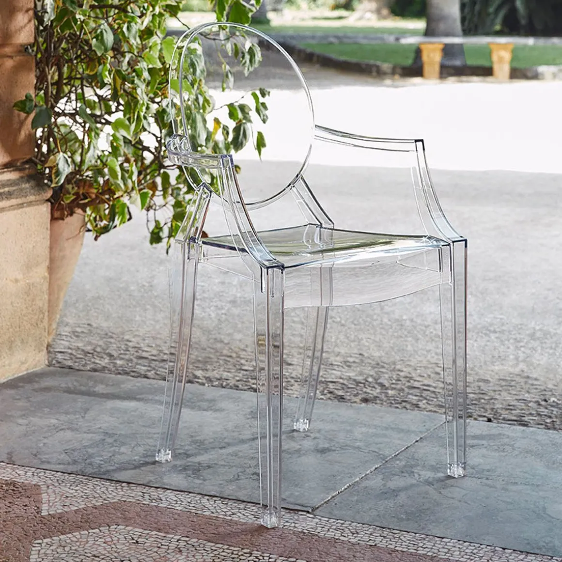Ce fauteuil confortable en polycarbonate transparent et coloré a tout pour nous rappeler le design Louis XV. Le fauteuil Louis Ghost, revisité par Philippe Starck prend un côté baroque pour étonner, émouvoir et fasciner. Ce fauteuil est une injection de polycarbonate en un seul moule, il est stable, résiste aux chocs et aux griffures. Ce mobilier design a la possibilité de s’empiler et s’intègrera parfaitement dans votre habitat.
