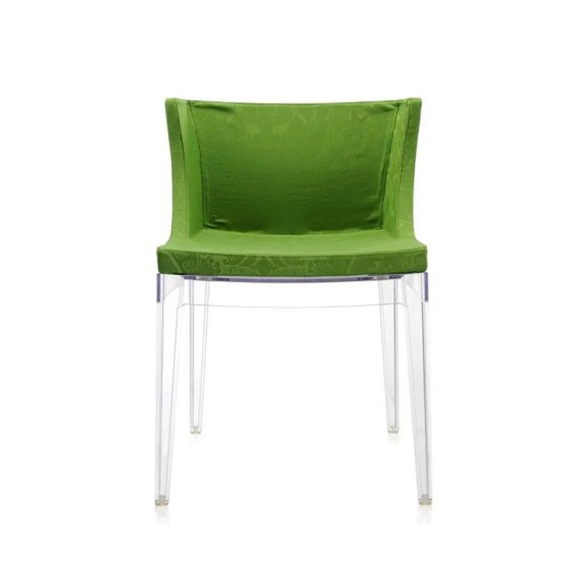 Fauteuil Mademoiselle damassé vert de Kartell par Philippe Starck.
