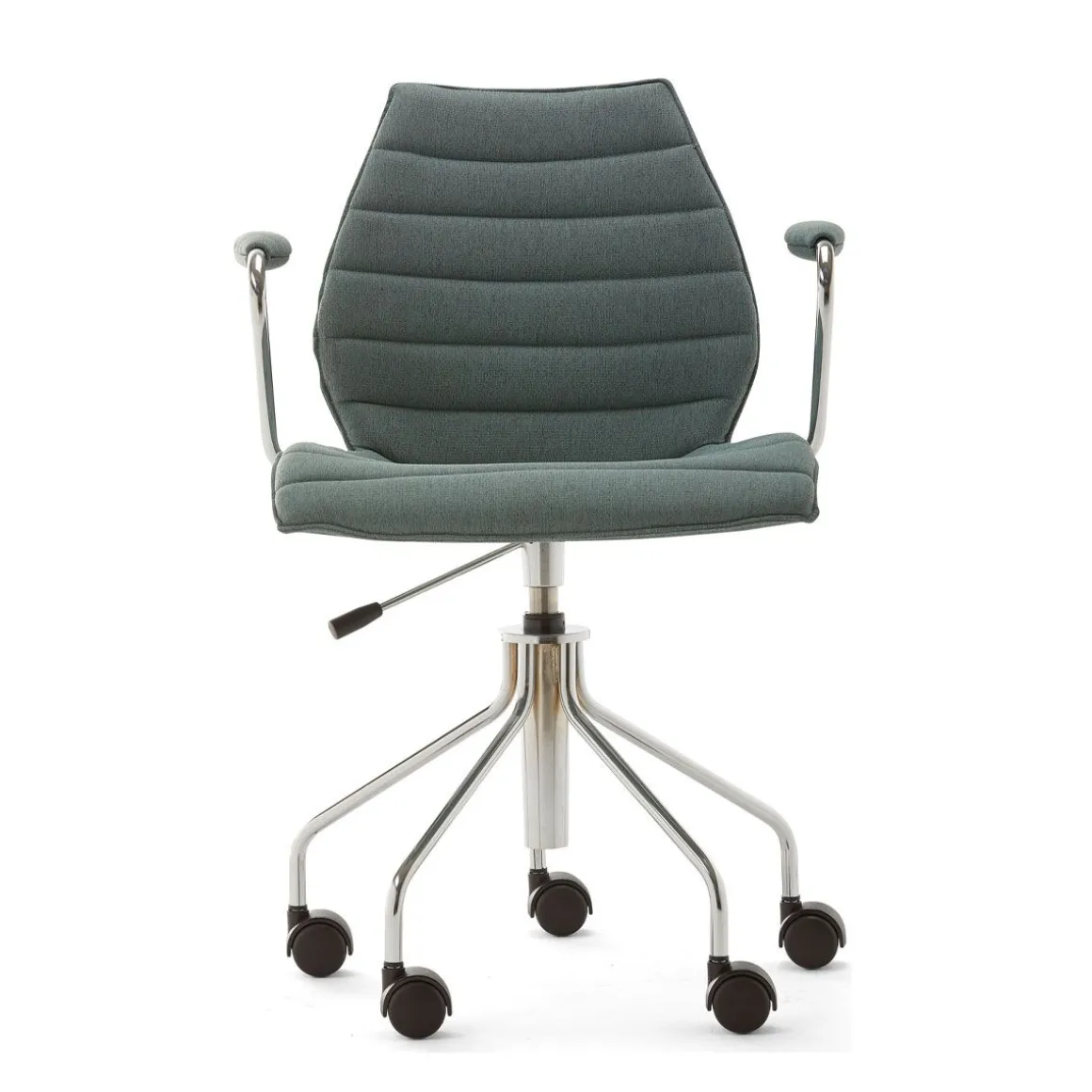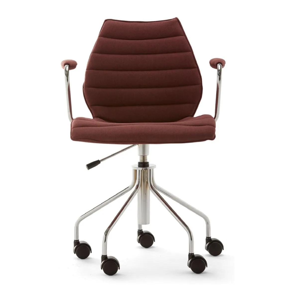Les chaises de bureau Maui forment une famille riche en variétés de couleurs et de formes brutes et douces, à même de répondre aux exigences spécifiques des espaces collectifs ou privés. Grâce à sa conception, la chaise Maui est empilable et peut être fixée, à l’aide d’un simple crochet arrière, à d’autres chaises du même type, rangée par rangée, à l’infini.